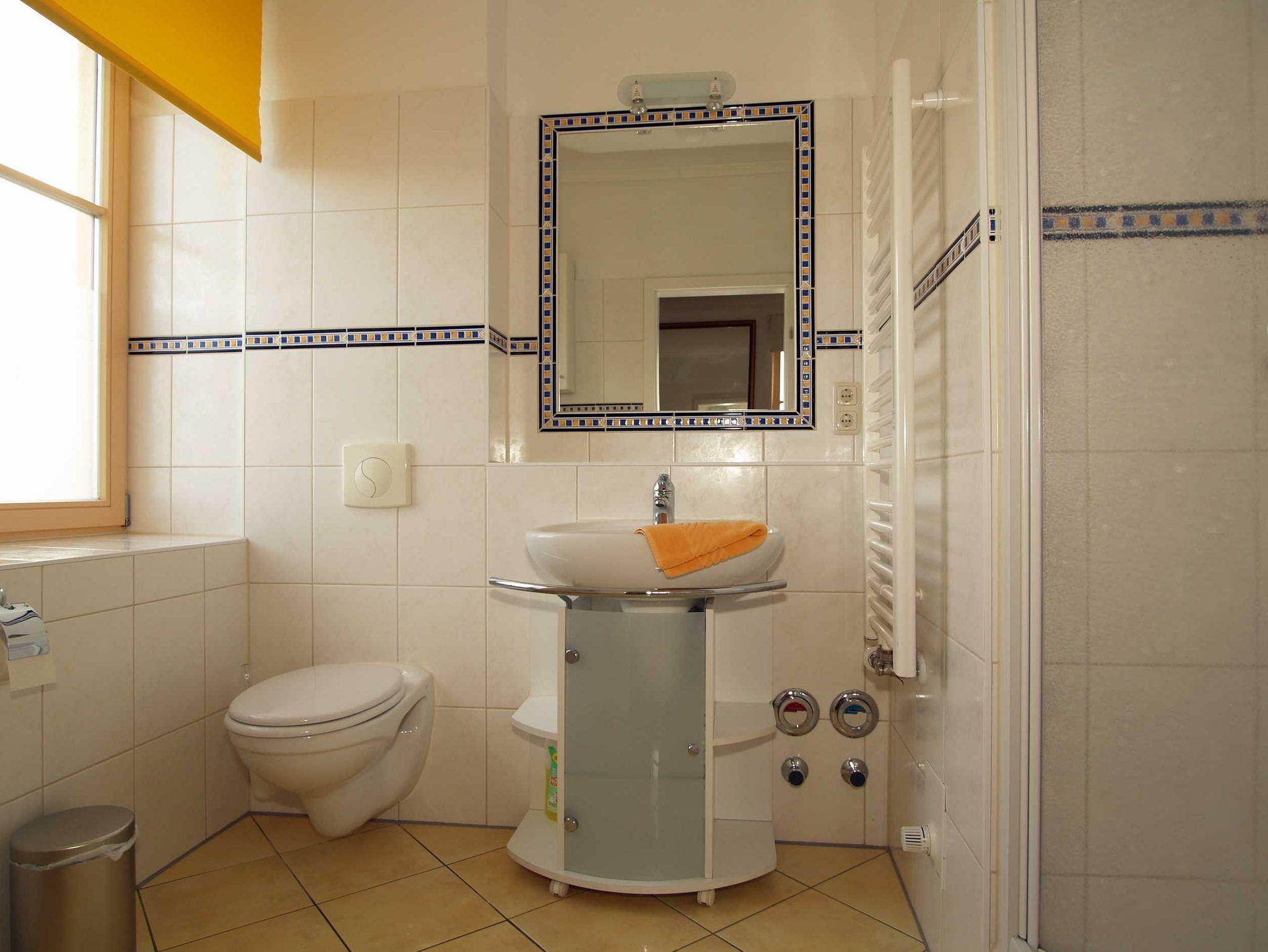 Die Wohnung verfügt über zwei separate Bäder - ein größeres und ein kleineres - beide jeweils mit Dusche, WC und Waschbecken. Das zweite Schlafzimmer hat direkten Zugang zu einem Tageslichtbad. Zur Ausstattung gehören außerdem: Handtuchwärmer in beiden Bädern, Föhn, Kosmetikspiegel und sogar eine Personenwaage.