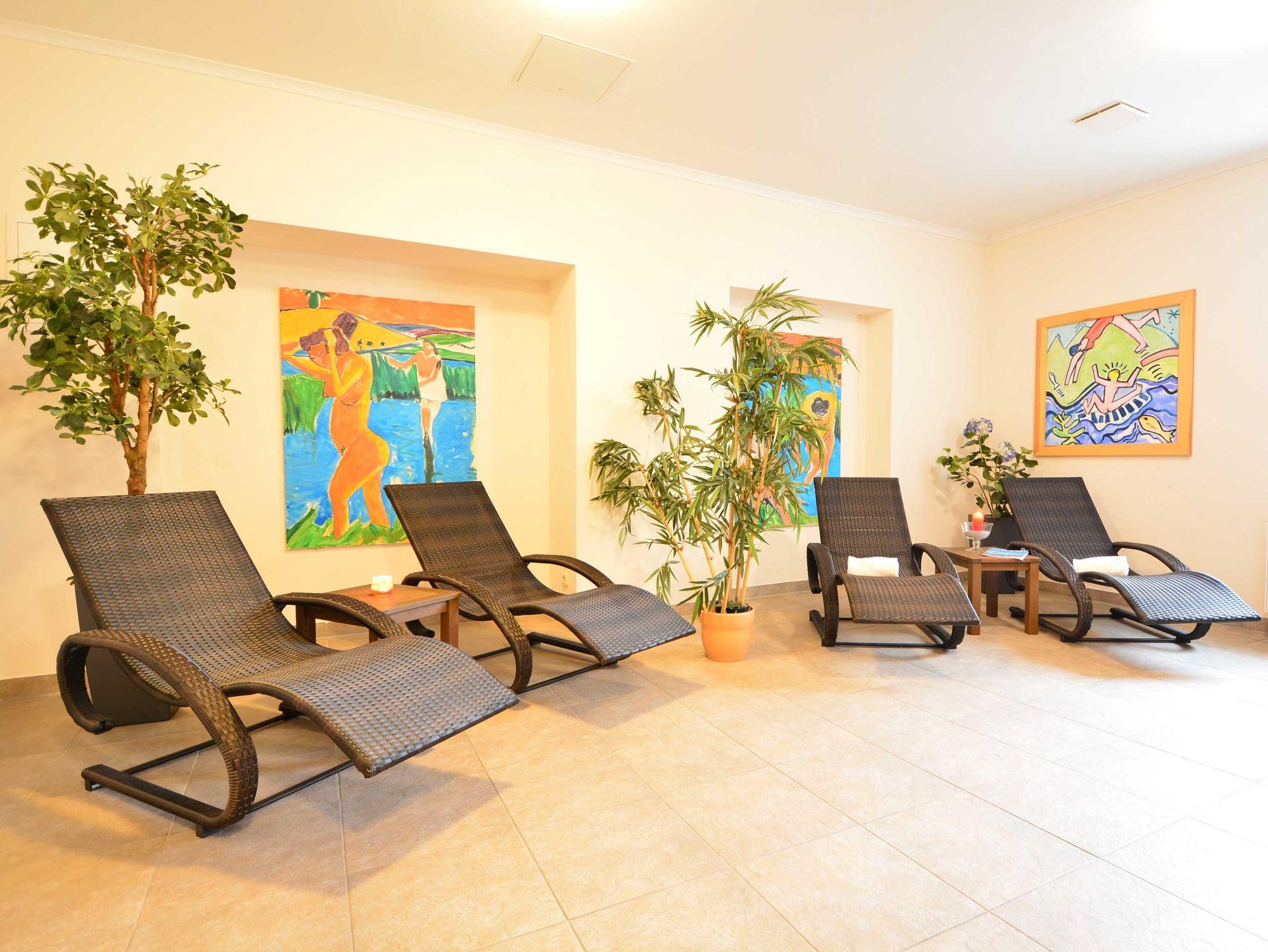 Im Keller des Hauses befinden sich eine Waschmaschine und ein Trockner, die Gästen des Hauses zur kostenlosen Nutzung zur Verfügung stehen. Ebenfalls im Keller gelegen ist eine gemeinschaftlich nutzbare Sauna, die gegen Gebühr Entspannung und Wellness im Haus ermöglicht. Ein kostenfreier Pkw-Stellplatz ist direkt an der Residenz vorhanden.