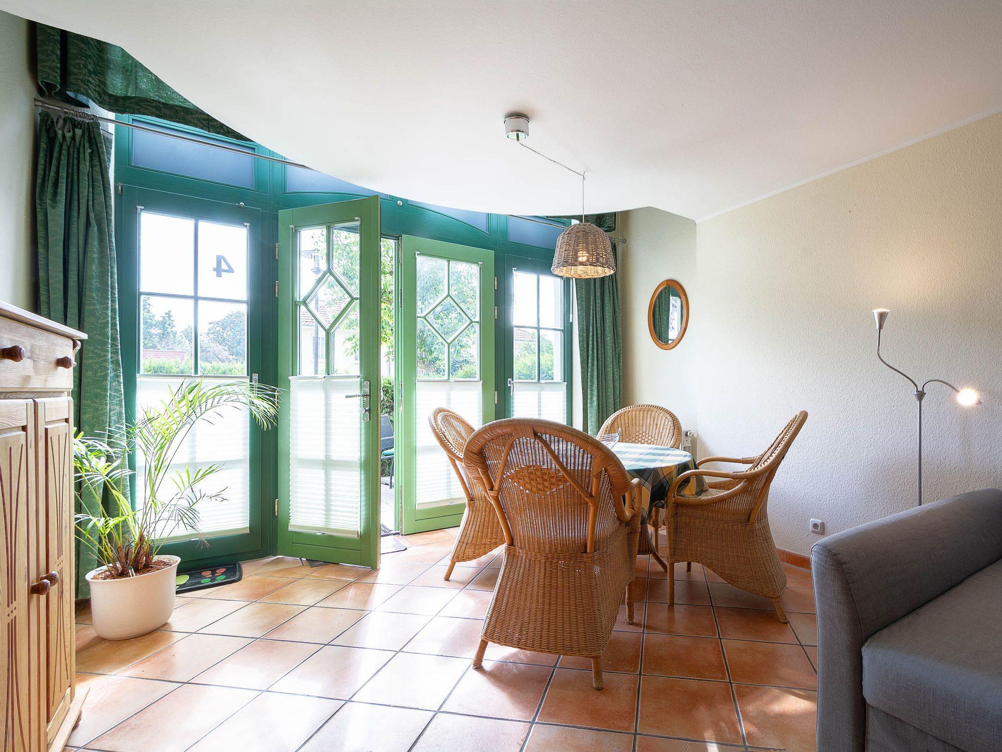 Von hier aus treten Sie auf Ihre möblierte Terrasse - perfekt für Frühstück im Freien oder entspannte Sommerabende.
