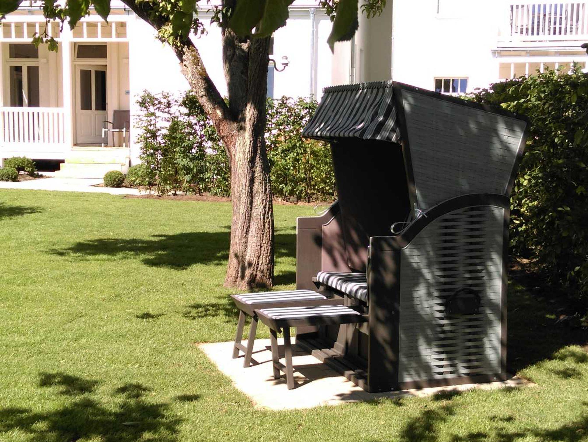 Das Haus verfügt zudem über einen schönen Garten mit Strandkörben und alten Obstbäumen.