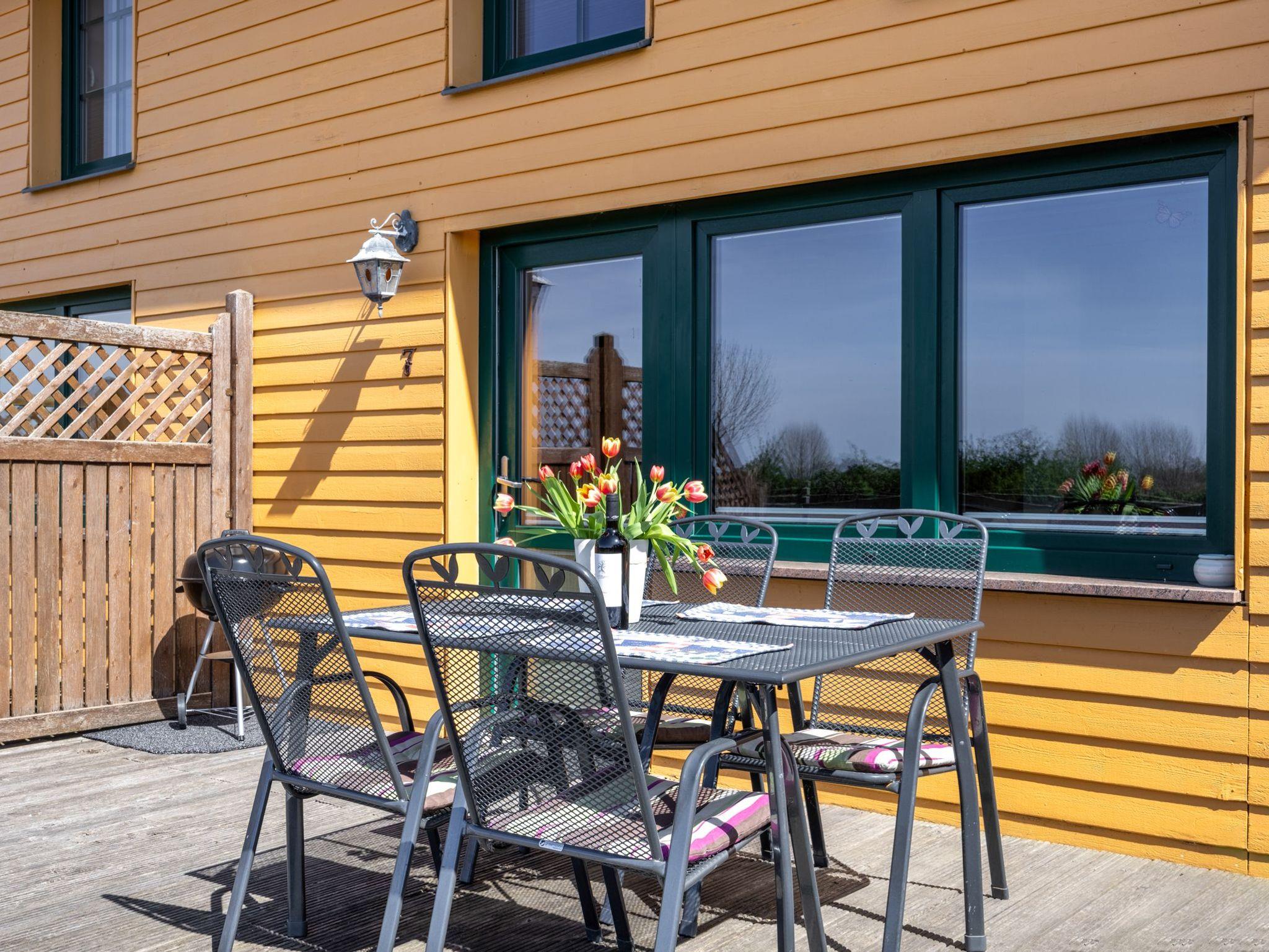 • Terrasse mit Sitzmöbeln und Grill direkt an der Ferienwohnung
