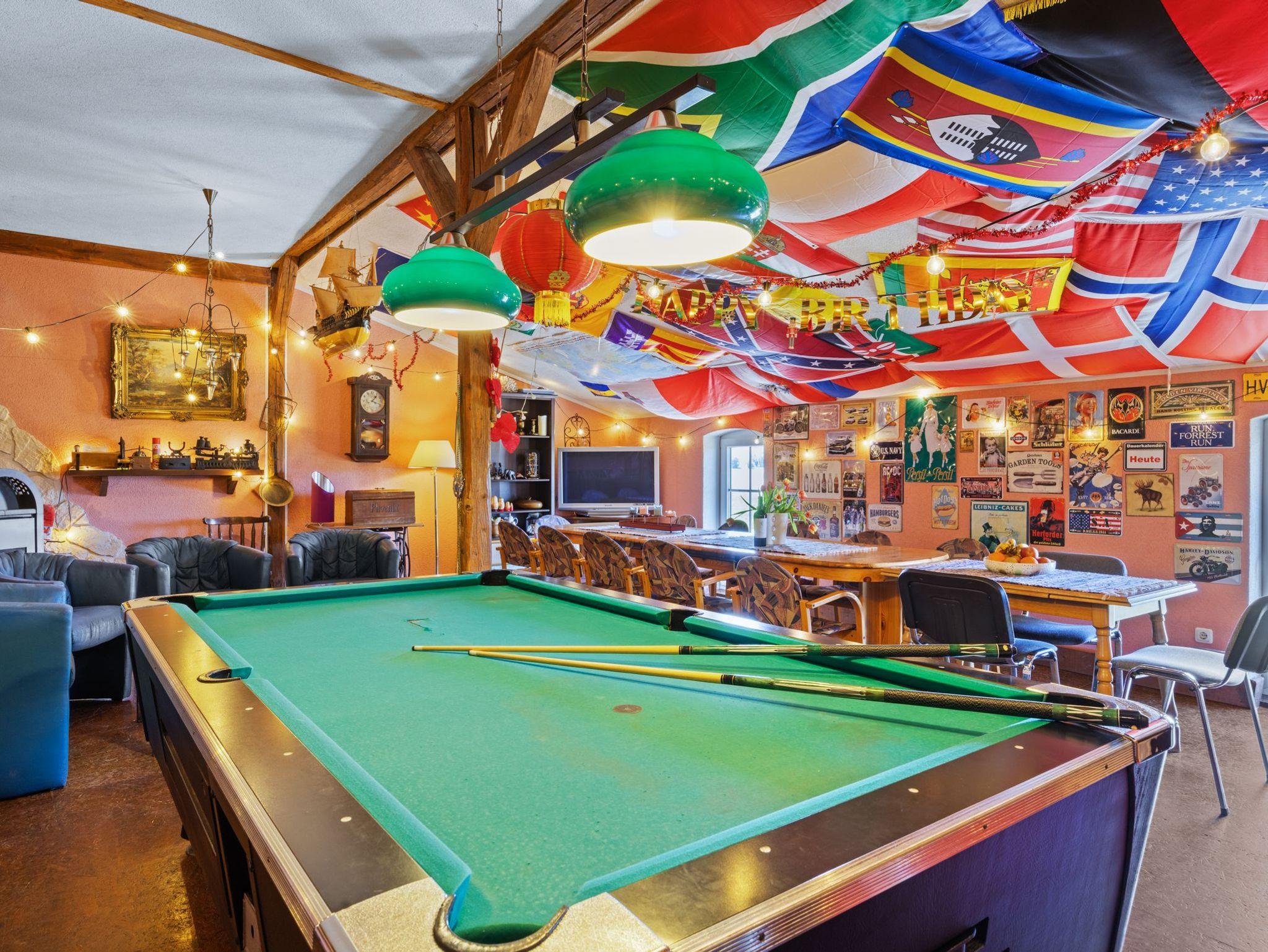 • Freizeitraum mit Billiardtisch und Kamin nach Verfügbarkeit