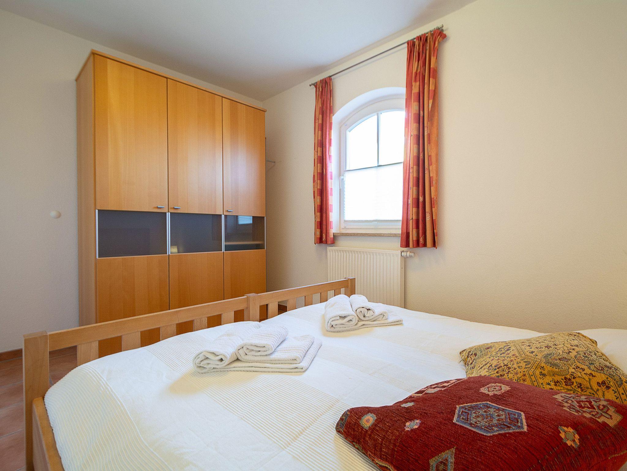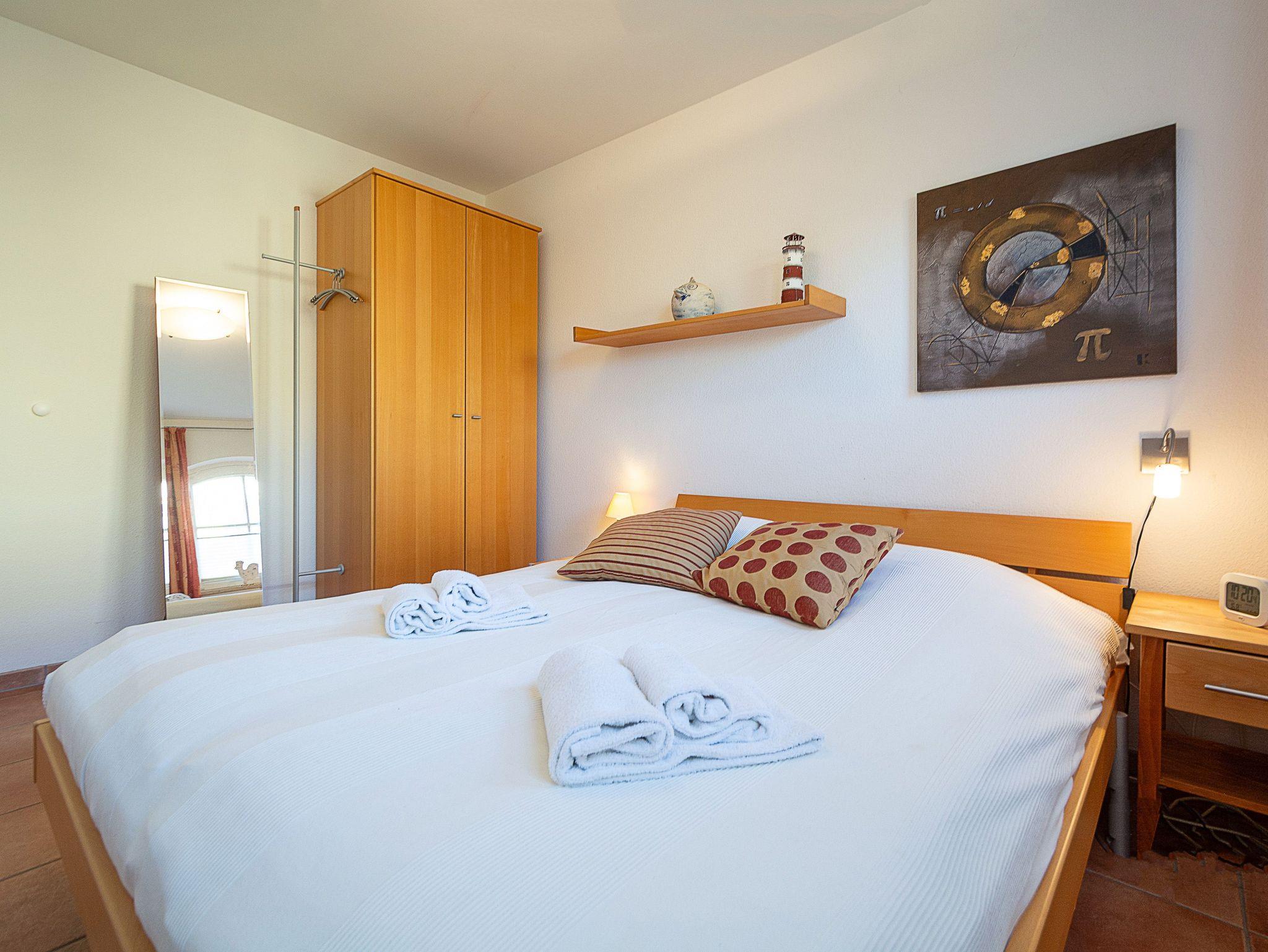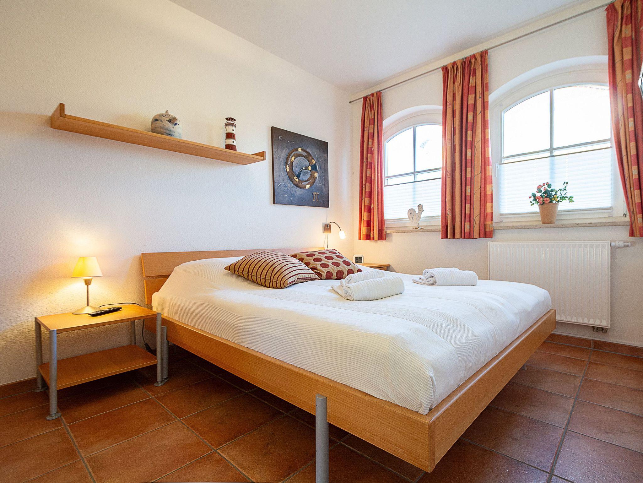 In den beiden Schlafzimmern lädt Sie jeweils ein komfortables Doppelbett (2 x 80cm x 200 cm) zur Nachtruhe ein. Das Bad mit Dusche und WC vervollständigt das Gesamtbild dieser Ferienwohnung.
