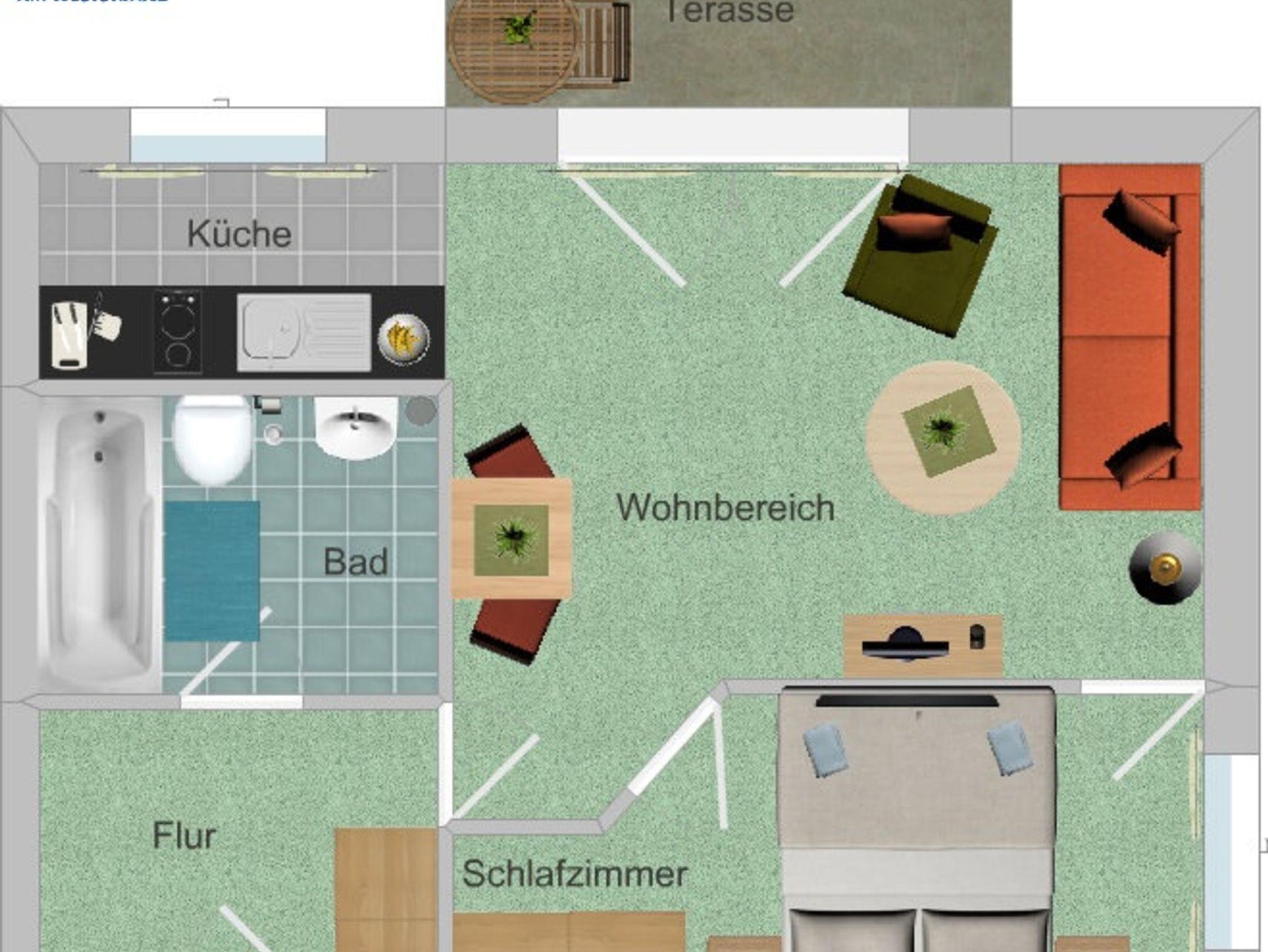 Das 2-Zimmer-Apartment mit Teppichboden befindet sich im Erdgeschoss des Hauses Waldeck. Mit ca. 40 m² Wohnfläche und einer Terrasse mit Strandkorb zur Südseite und Blick zum Stadtwald (sehr ruhige Lage), besteht das Apartment aus einem Wohnzimmer mit Schlafcouch und einer voll ausgestatteten Küchenzeile mit Geschirrspülmaschine, Kühlschrank, Mikrowelle, Zwei-Platten-Cerankochfeld, Kaffeemaschine, Wasserkocher und einem Toaster. Das Schlafzimmer verfügt über ein Doppelbett. Im Badezimmer befindet sich eine Badewanne, ein Fön wird Ihnen zur Verfügung gestellt. Das Apartment ist für maximal 2 Erwachsene und insgesamt 3 Personen geeignet, auch Hunde sind gestattet.