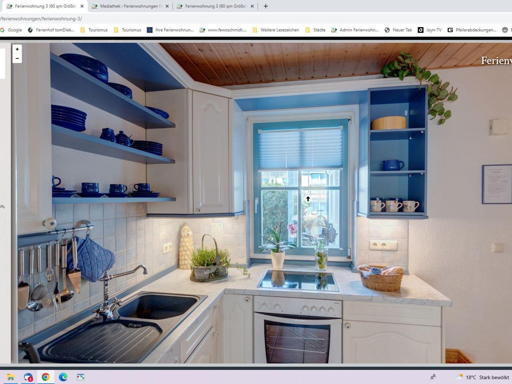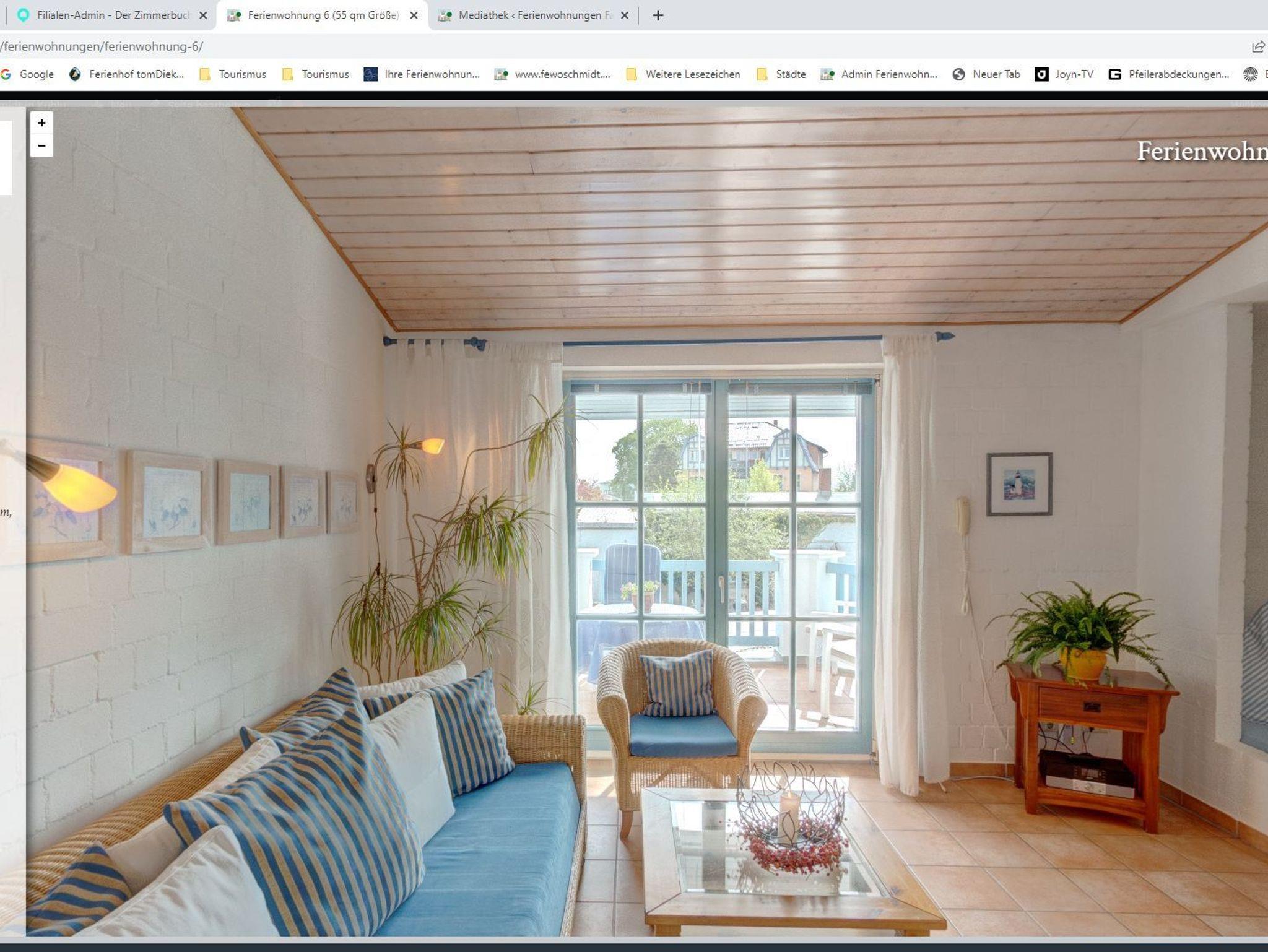 Die Wohnungen Nr. 3 und 7 sind in einem Ferienhaus im EG liegende Ferienwohnungen von ca. 60 qm Größe, bestehend aus Wohnzimmer mit Erker und Terrasse inkl. Strandkorb, Schlafzimmer und Küche.