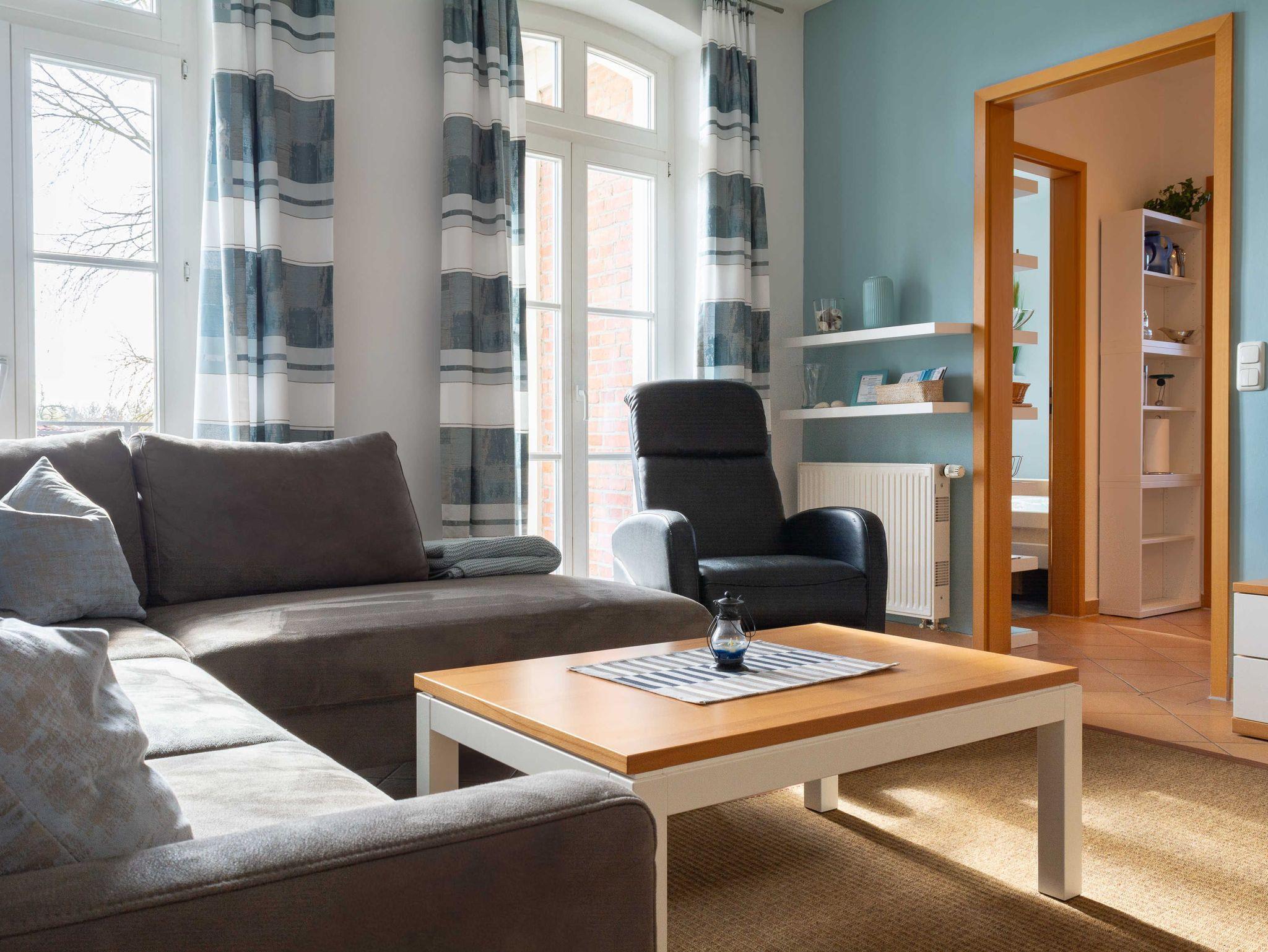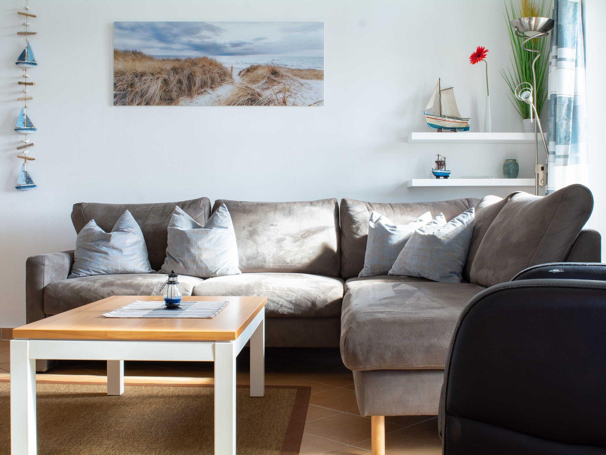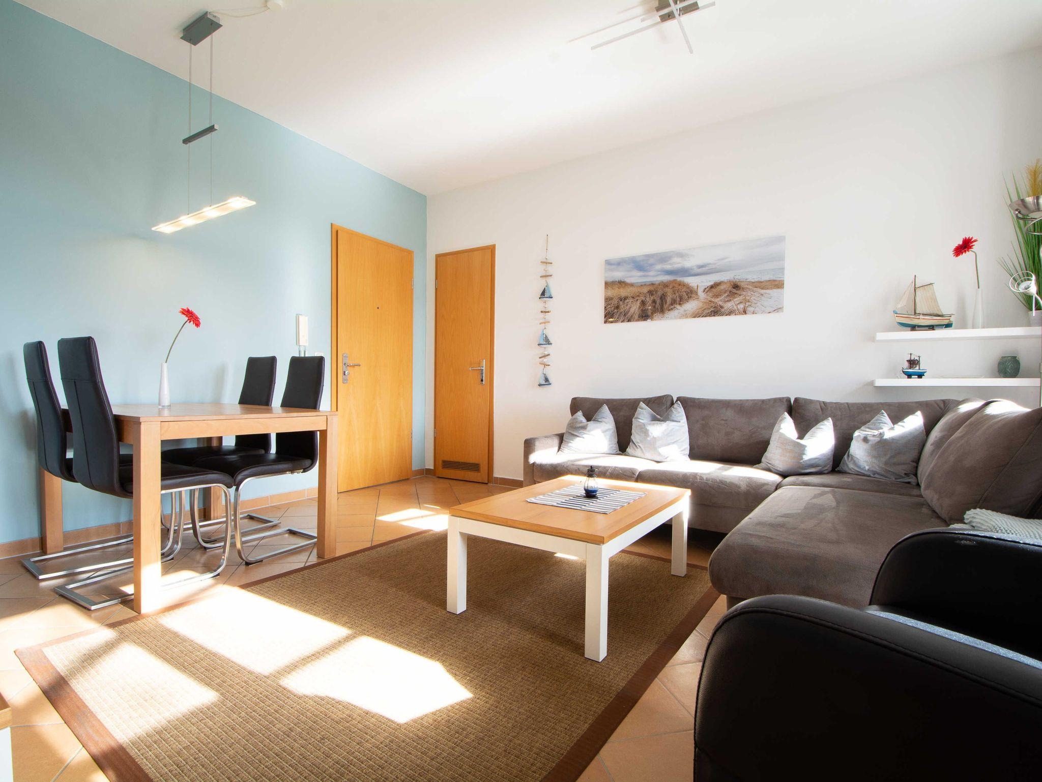 Herzlich willkommen in der Wohnung Nr. 10 im Waldhaus! Sie wohnen in einer 53 m² großen 3-Raum-Ferienwohnung, die sich im 1. Obergeschoss befindet. Im hellen freundlichen Wohnraum befinden sich eine gemütliche Eckcouch, 43-Zoll-HD-TV mit Radio sowie der Essplatz. Von hier aus gelangen Sie auf einen möblierten Balkon, der nach Osten ausgerichtet ist.