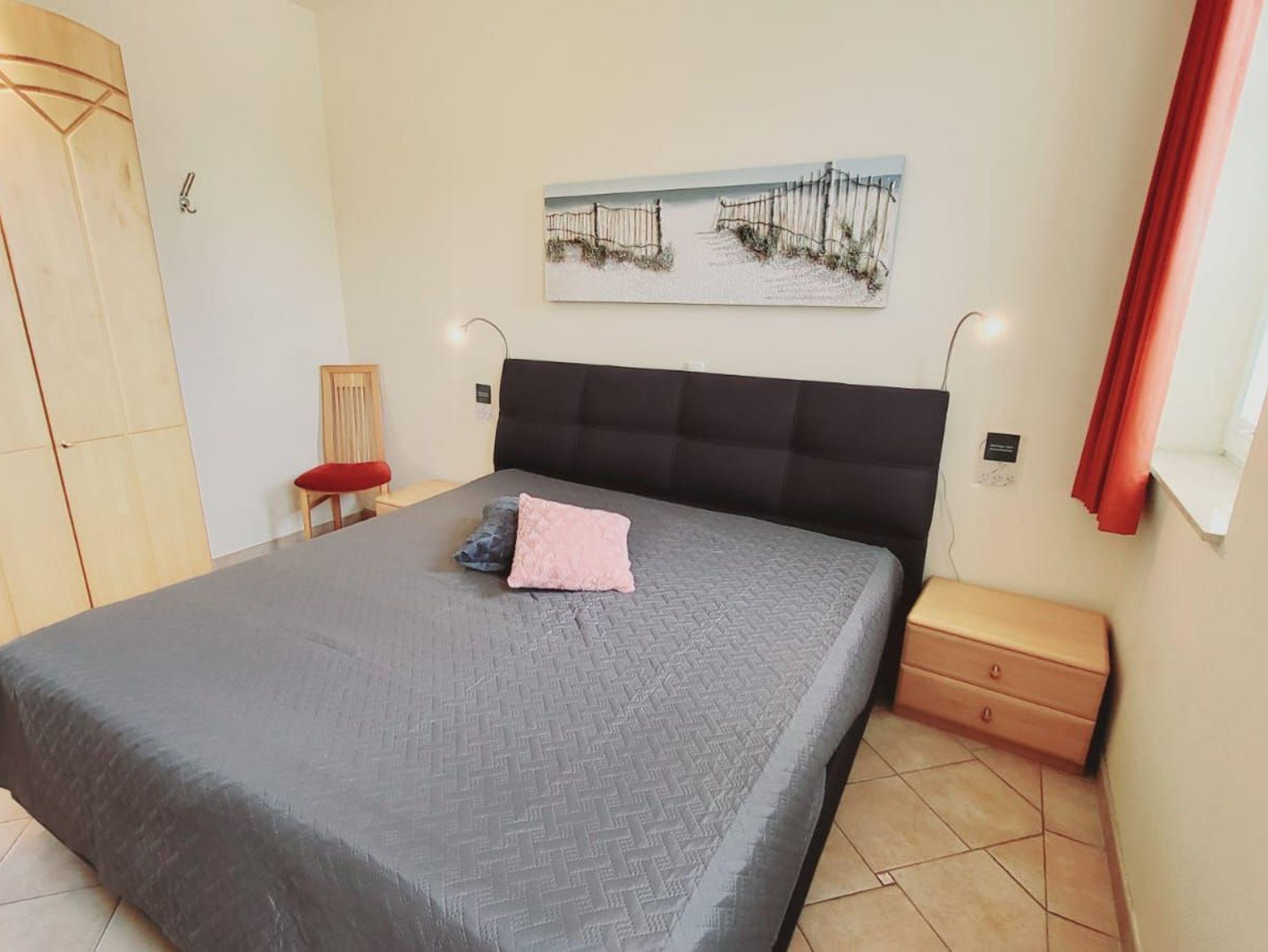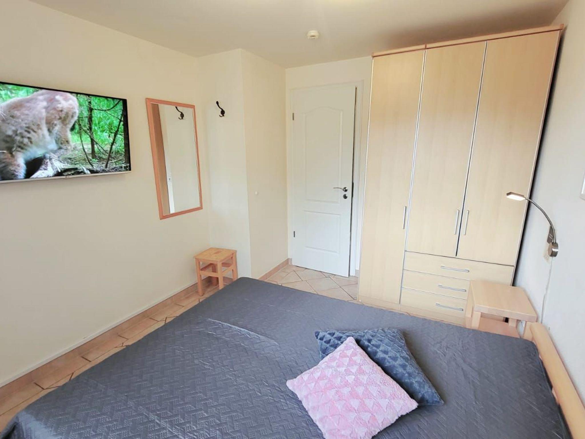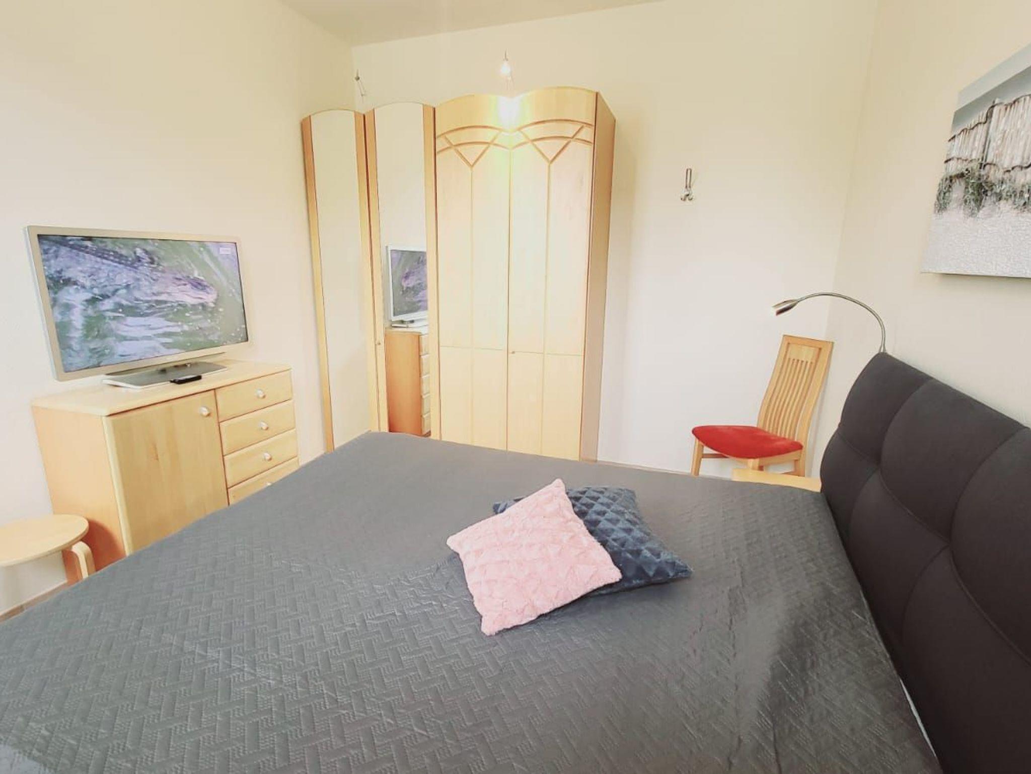 - 1. Schlafzimmer mit Doppelbett, Kleiderschrank und TV