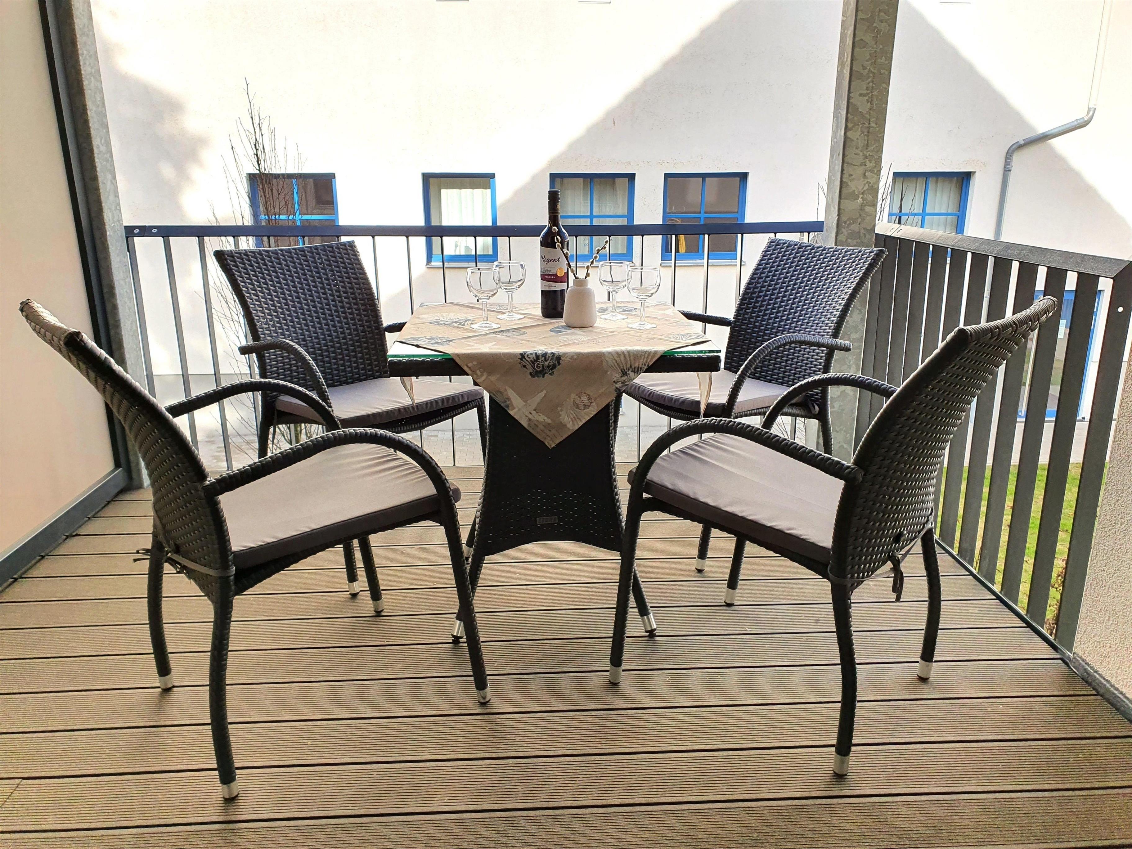 Zur Wohnung gehört Balkon zur Nordseite, welcher zum Verweilen und Entspannen nach langen Strandspaziergängen oder einem Shoppingtag einlädt.