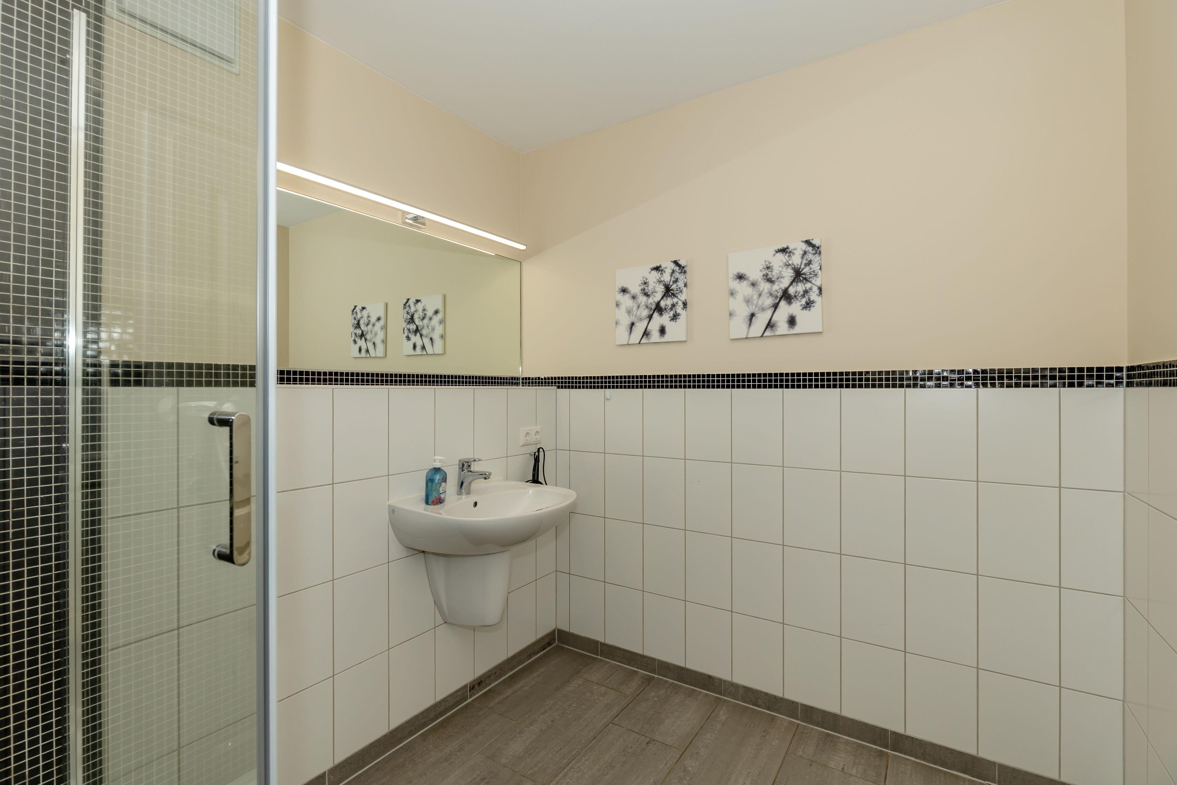 Die Wohnung verfügt über ein Badezimmer mit Dusche. Damit sich niemand in die Quere kommt, ist ein separates WC mit Waschbecken vorhanden.