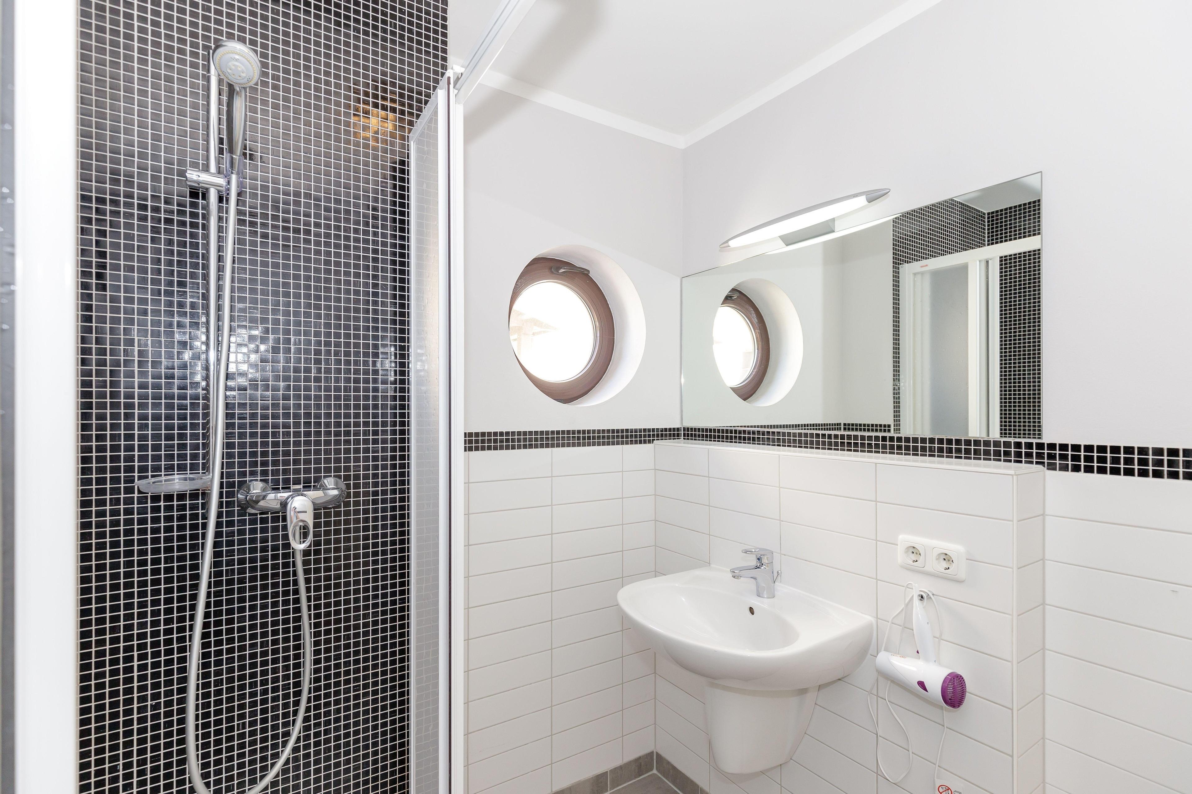 Die Wohnung verfügt über ein Badezimmer mit Dusche. Damit sich niemand in die Quere kommt, ist ein separates WC mit einem 2ten Waschbecken vorhanden.