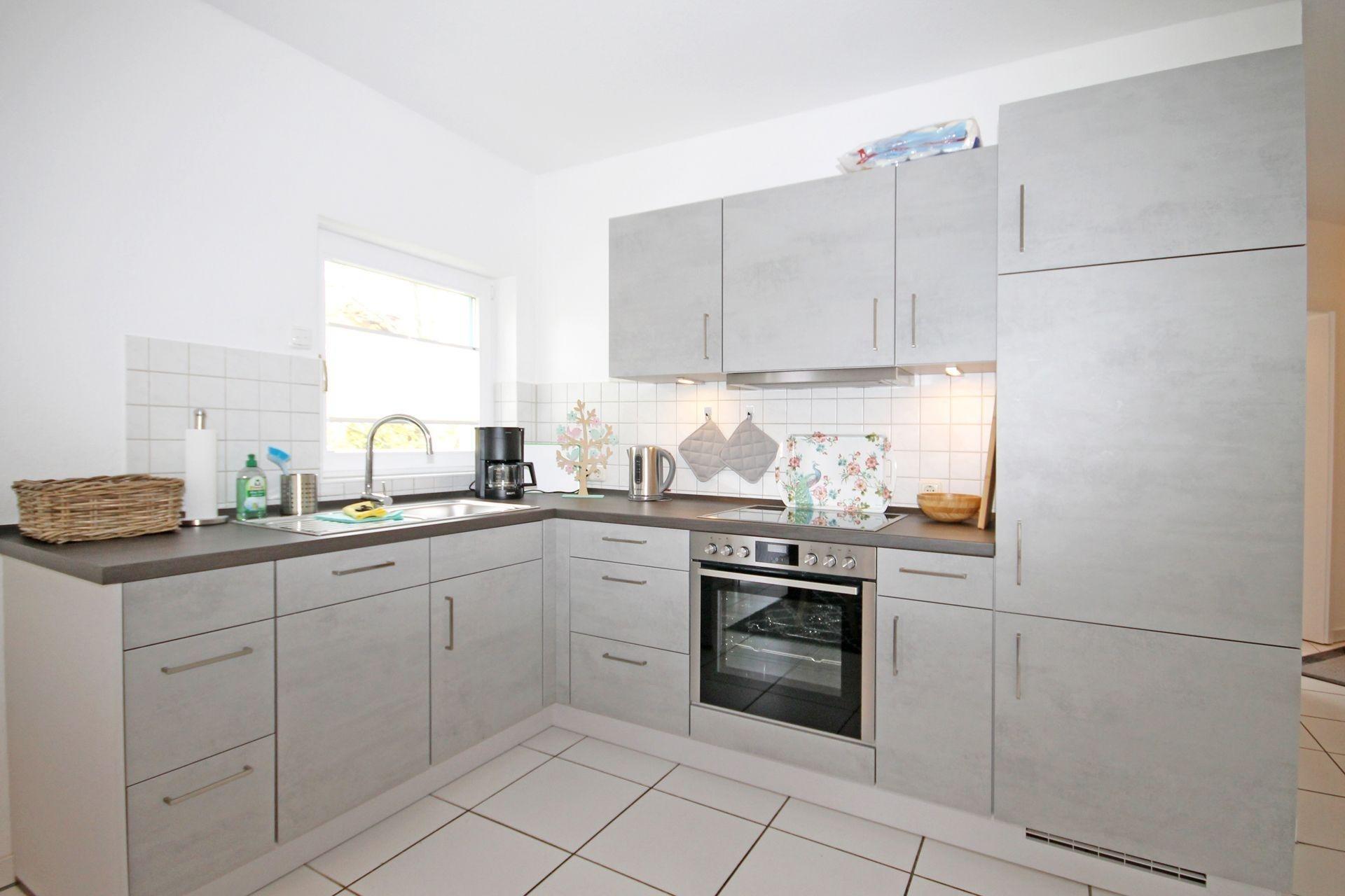 Die helle lichtdurchflutete Wohnung im 1. OG der Strandstraße 34a, ist ausgestattet mit einer, in den großen Wohnraum integrierten Küche. Die Küche ist sehr modern ausgestattet mit einem Herd, Backofen, Dunstabzugshaube, Kühlschrank, Gefrierfach, Geschirrspülmaschine, Toaster, Kaffeemaschine, diverse Kochutensilien, Besteck, Geschirr und vieles mehr. Der Urlaubskoch muß also nicht beengt improvisieren, sondern kann aus dem Vollen schöpfen - mit Blick auf die sommerliche Abendsonne auf dem Balkon.
