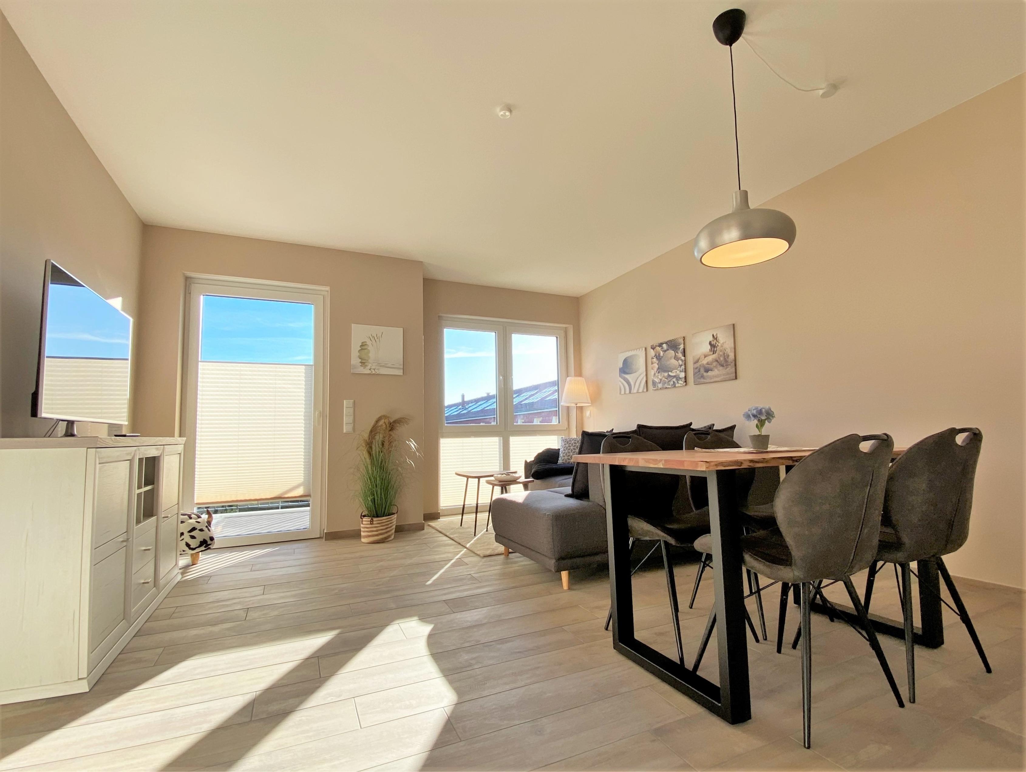 Unser sehr liebevoll eingerichtetes Appartement 38 befindet sich im 2. OG des Hauses und bietet Ihnen auf 57qm alles, was man für einen schönen Urlaub braucht. Alle Räumlichkeiten sind mit hochwertigem Mobiliar sowie Fußbodenheizung und Außenjalousien ausgestattet. Eine Belegung mit 2 Erw. + Kleinkind bis 3 Jahren im Reisebett ist in diesem App. möglich.