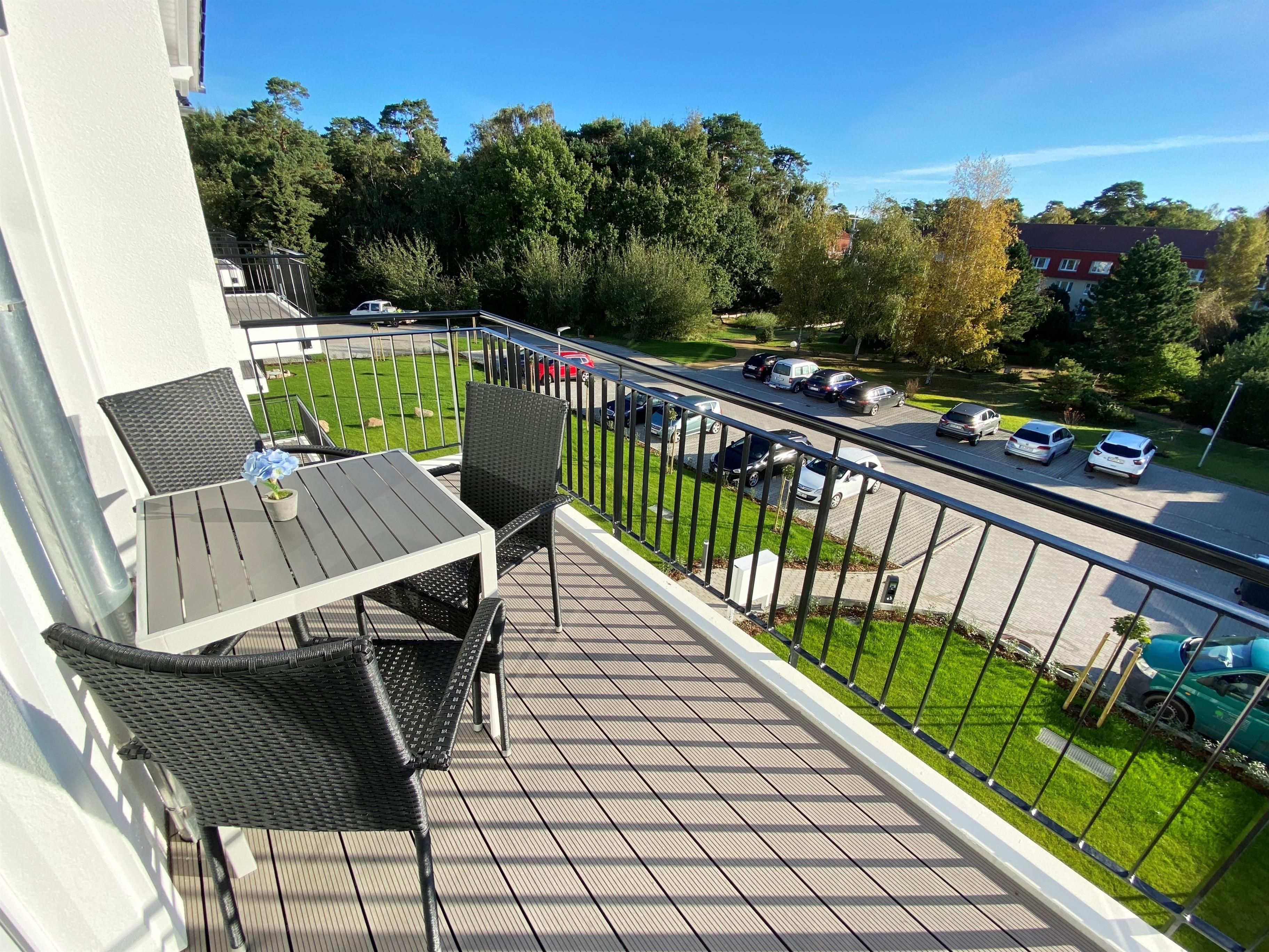Über den Wohnbereich und auch vom Schlafzimmer aus gelangen Sie auf den schönen Balkon Richtung Osten. Hier können Sie morgens wunderbar frühstücken und nachtmittags im Schatten entspannen. Der Balkon ist mit 3 gemütlichen Stühlen und einem Tisch ausgestattet.