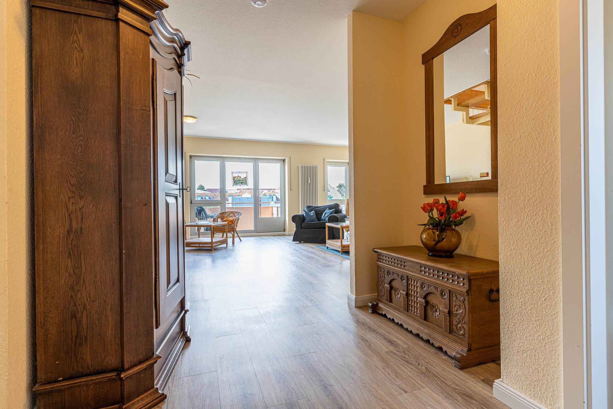 Ab der ersten Etage befinden sich weitere Ferienwohnungen in verschiedenen Größen und Einrichtungen, teilweise mit wunderschönem Meerblick. Ein Fahrstuhl bringt Sie gerne in die oberen Etagen.