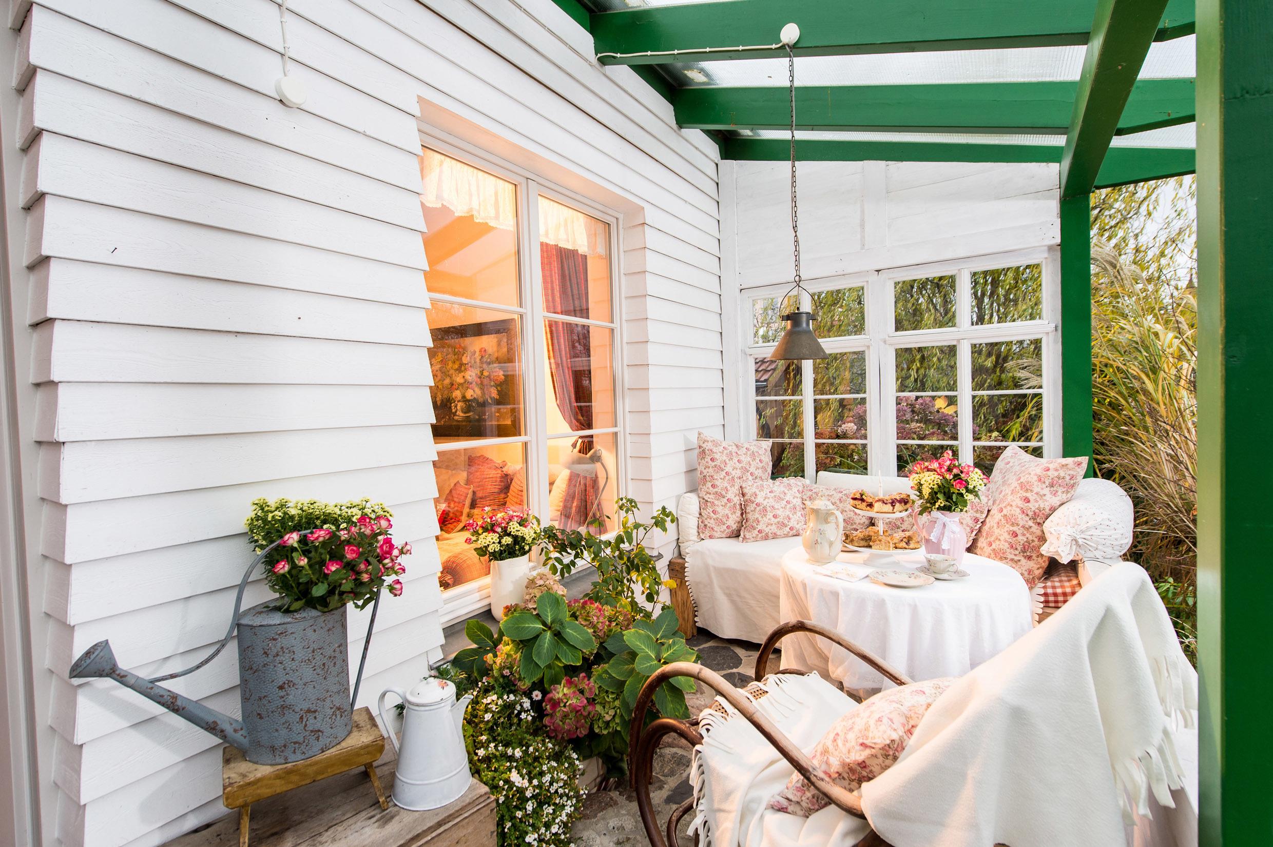Hier kann man sich so richtig einigeln - immer dort, wo der Garten am meisten zu bieten hat, Sommer wie Winter.
