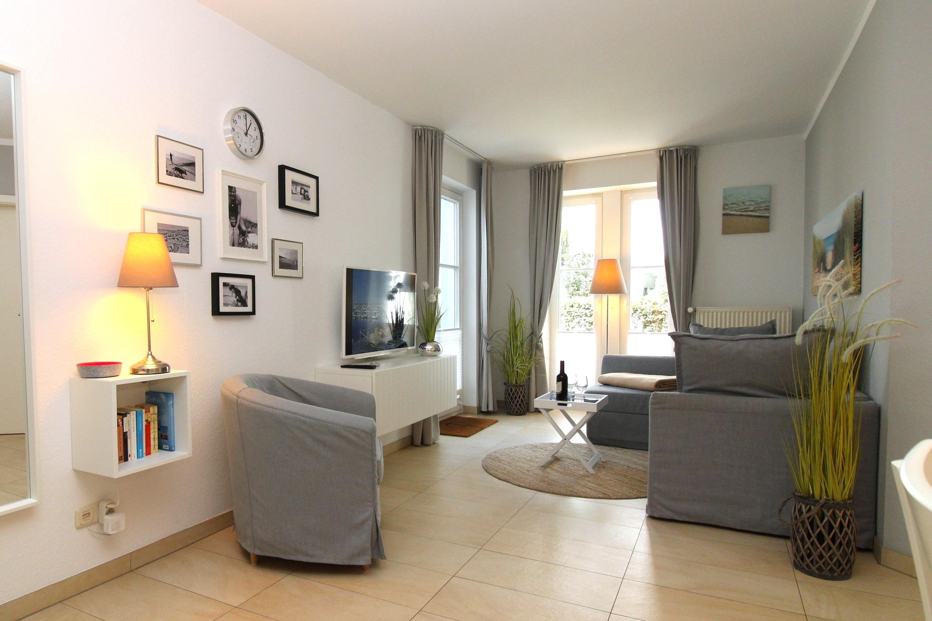 Das strandnahe und moderne 2-Zimmer-Appartement 238 (ca. 43 m²) im Erdgeschoss im Haus C besitzt ein hohes Maß an Wohlfühlkomfort und ist komplett eingerichtet. Alle Böden der Wohnung sind mit hochwertigen Fliesen ausgestattet.