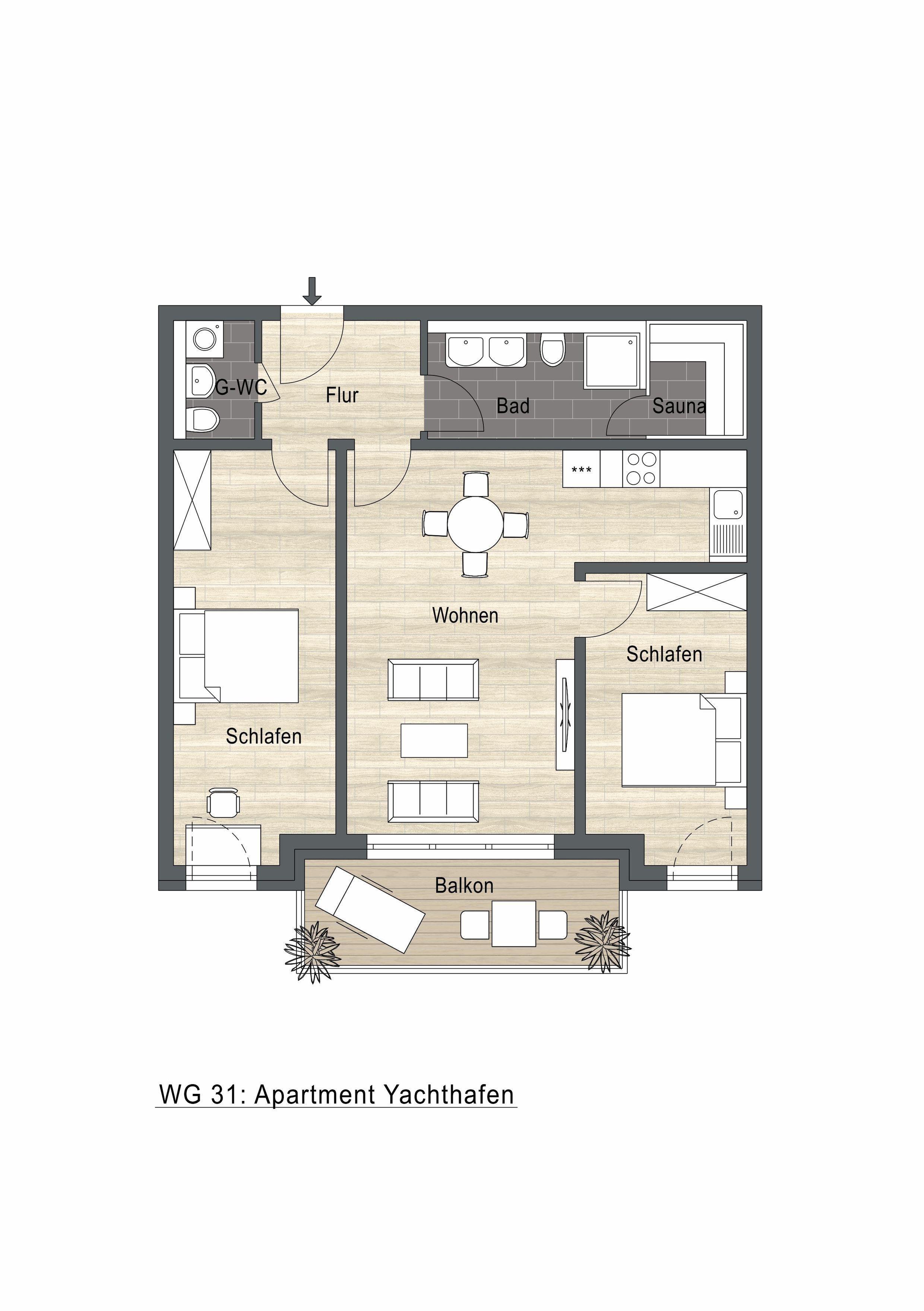 Die lichtdurchflutete 3-Raum-Wohnung ca. 76 m² mit 5-Sterne-Niveau befindet sich im 2. OG und ist bequem per Lift zu erreichen.