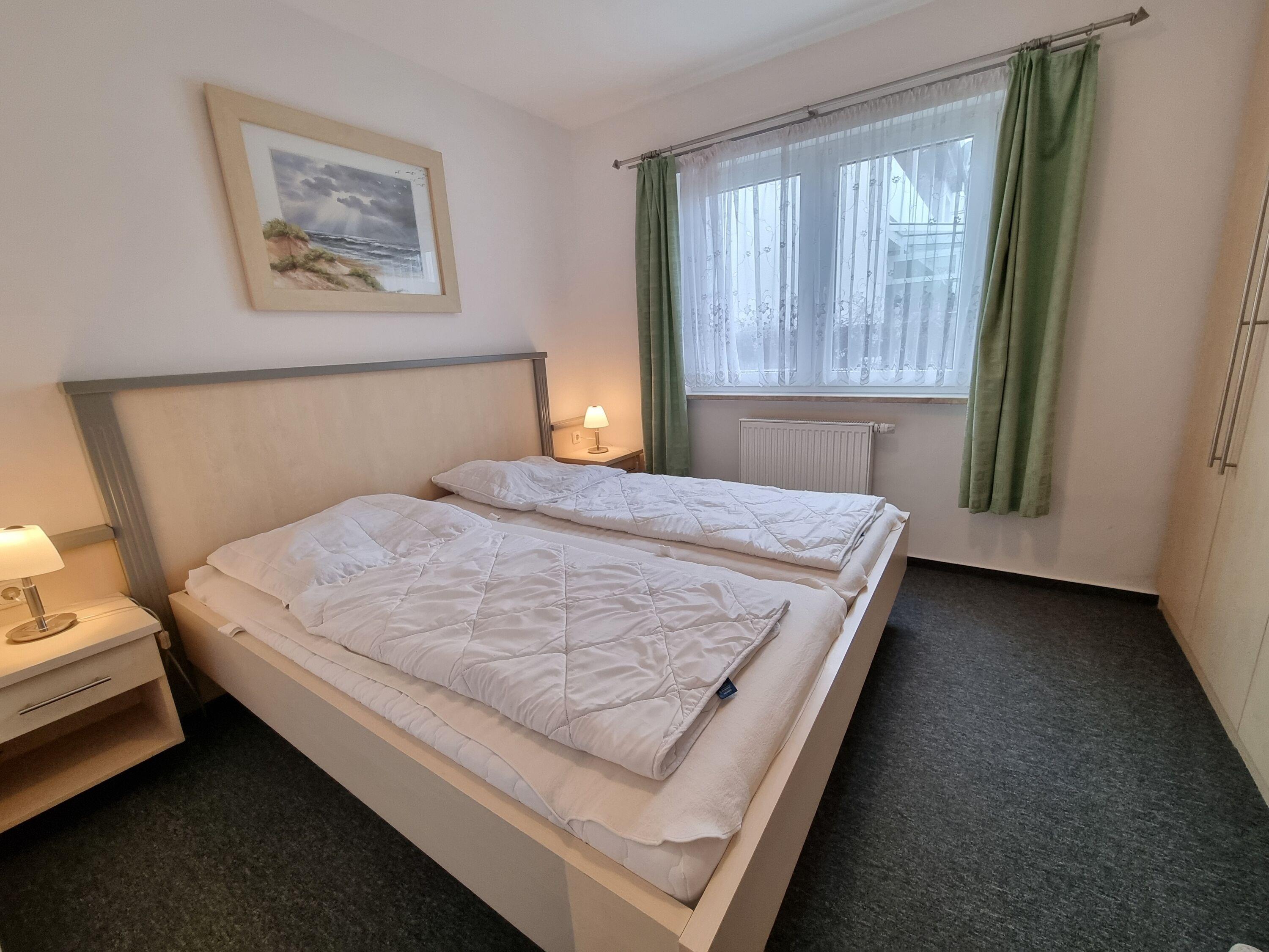 Das Badezimmer verfügt über eine Badewanne. Das erste Schlafzimmer ist mit einem großen Doppelbett ausgestattet.