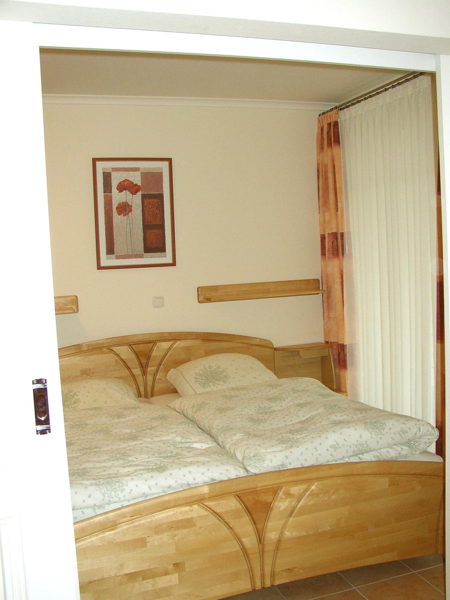 Im Schlafzimmer mit Doppelbett und großem Kleiderschrank werden Sie ihren zur Erholung notwendigen gesunden Schlaf finden.
