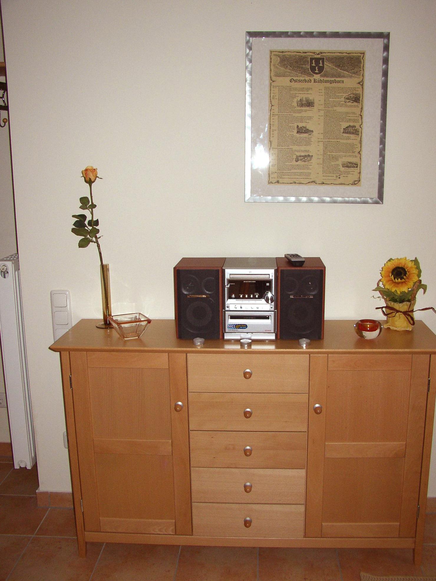 Das freundliche Wohnzimmer mit einer bequemen Schlafcouch ist ebenfalls mit allem ausgestattet, das Sie zu einem entspannenden Aufenthalt benötigen. Zur Unterhaltung stehen Ihnen Fernseher, Kompaktanlage, eine Spielesammlung und Lesestoff zur Verfügung.