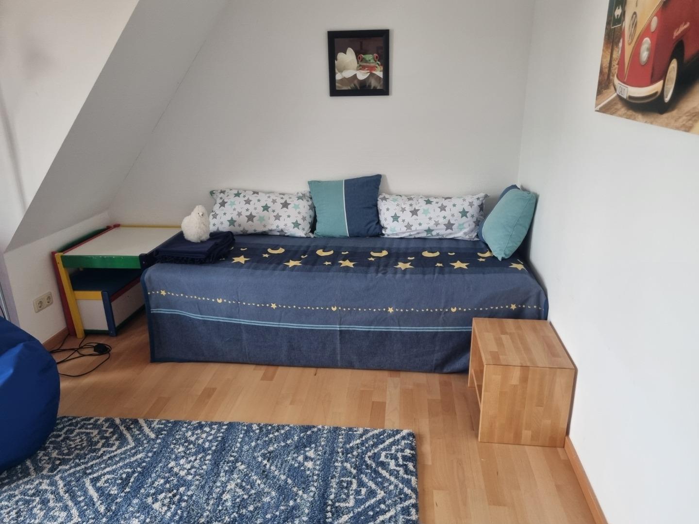 Das weitere Schlafzimmer mit Doppelbett und eigenem TV, das Kinderzimmer oder dritte Schlafzimmer mit einem Einzelbett oder umgebaut einem Doppelbett sowie das zweite Bad mit Badewanne befinden sich ebenfalls auf der dritten Etage.