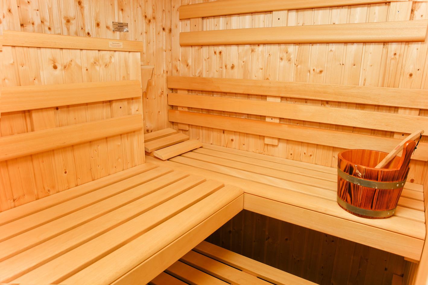 Eine Sauna steht im Badezimmer mit Münzvorrichtung kostenpflichtig zur Verfügung.