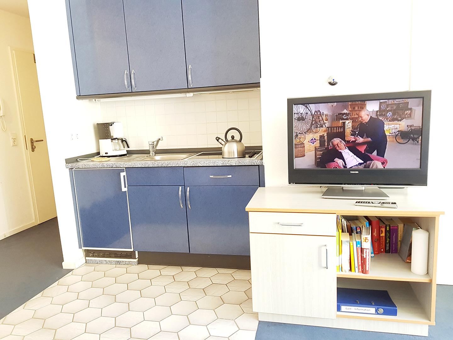 Zur technischen Ausstattung gehört ein Flachbild-TV. Die Wohnung ist mit Teppichboden ausgestattet.