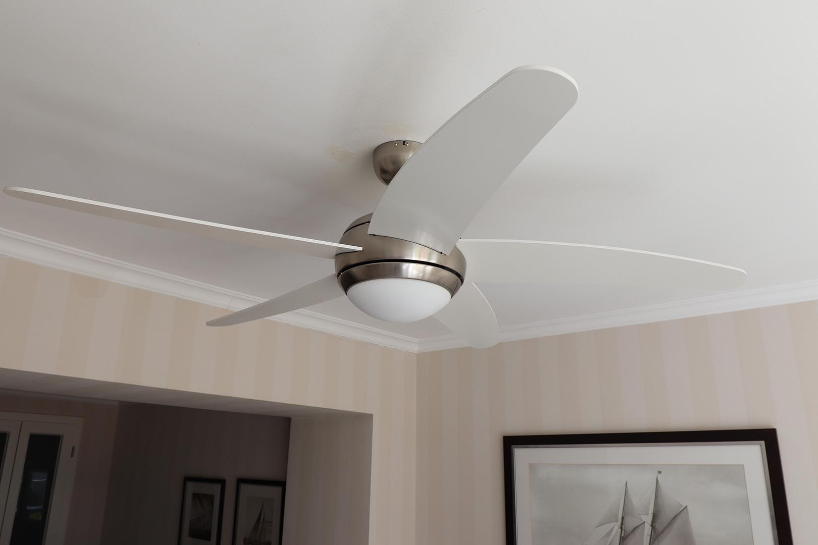 Das Schlafzimmer ist zudem mit einem Deckenventilator ausgestattet.