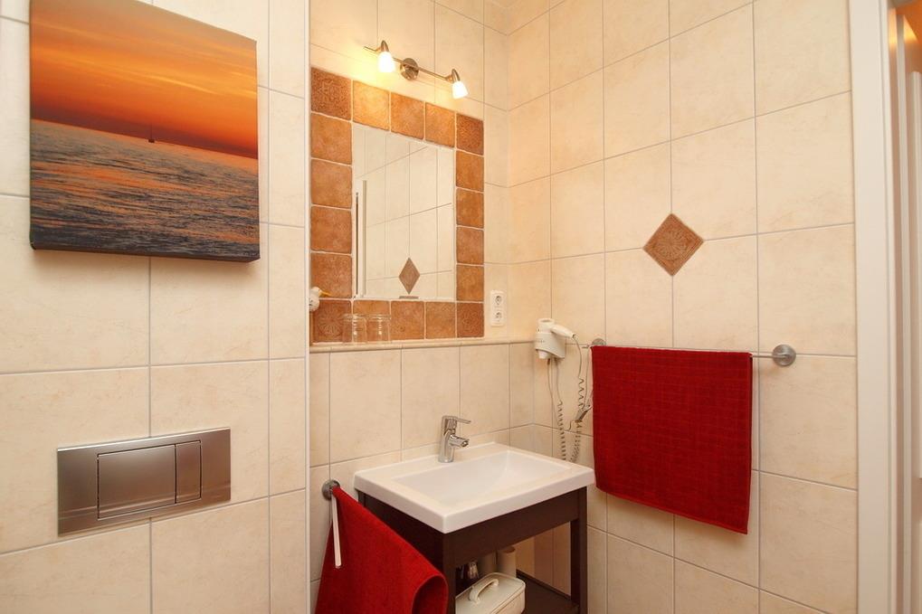 Das Duschbad/WC rundet die gemütliche Ferienwohnung ab.