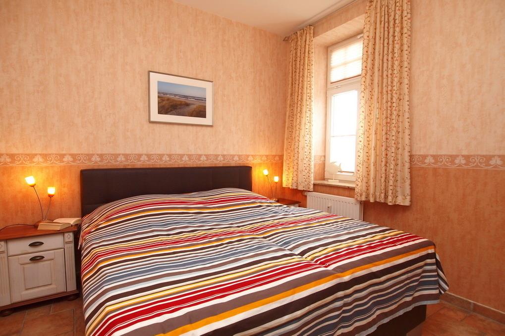 Im gemütlichen Schlafzimmer werden Sie erholsam im Doppelbett schlafen.