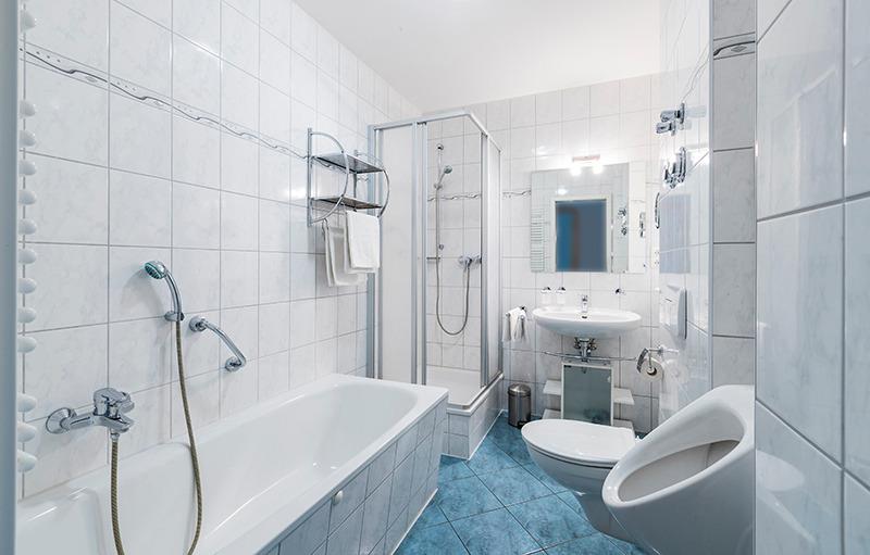 In einem Schlafzimmer befindet sich ein Doppelbett und im weiteren Schlafzimmer 2 Einzelbetten. Das Duschbad/WC mit Badewanne sowie ein Gäste- WC ergänzen die Wohnung.