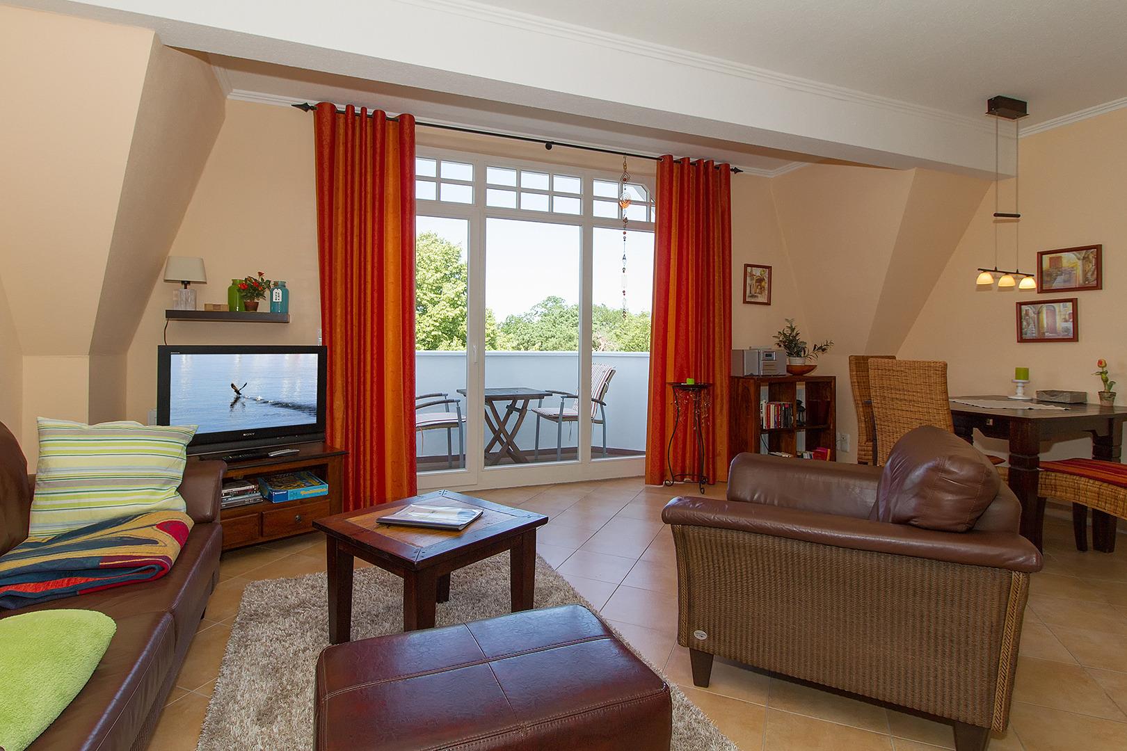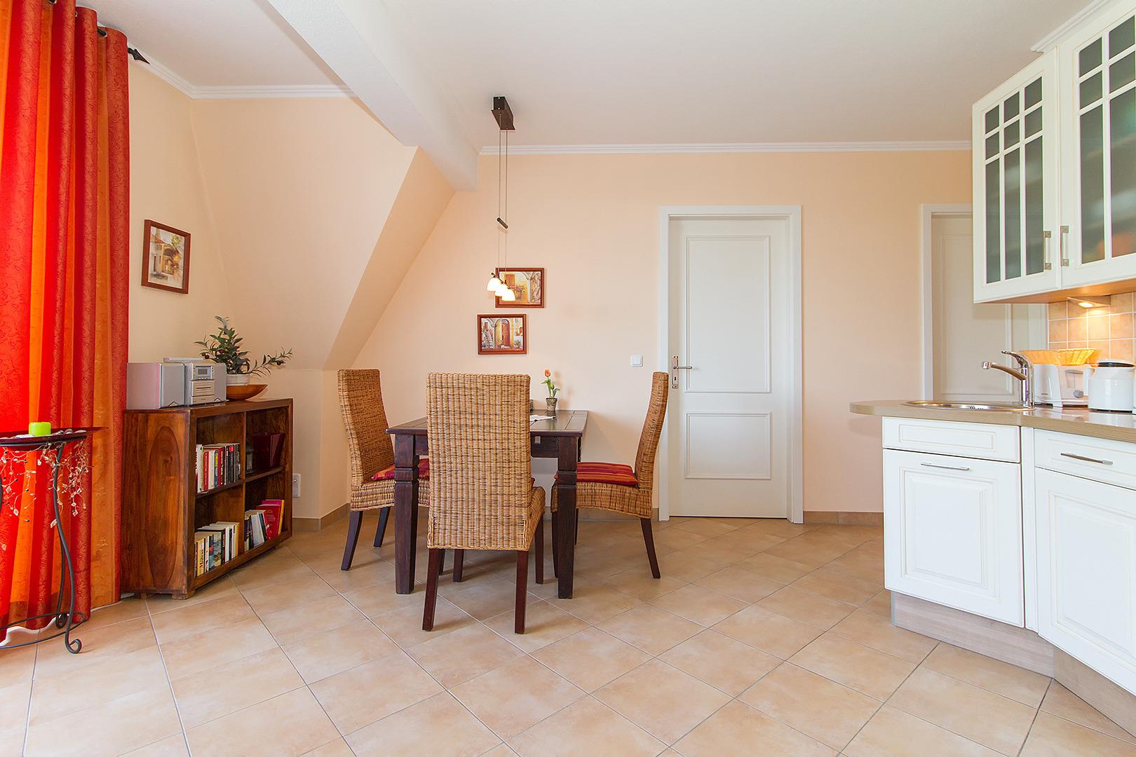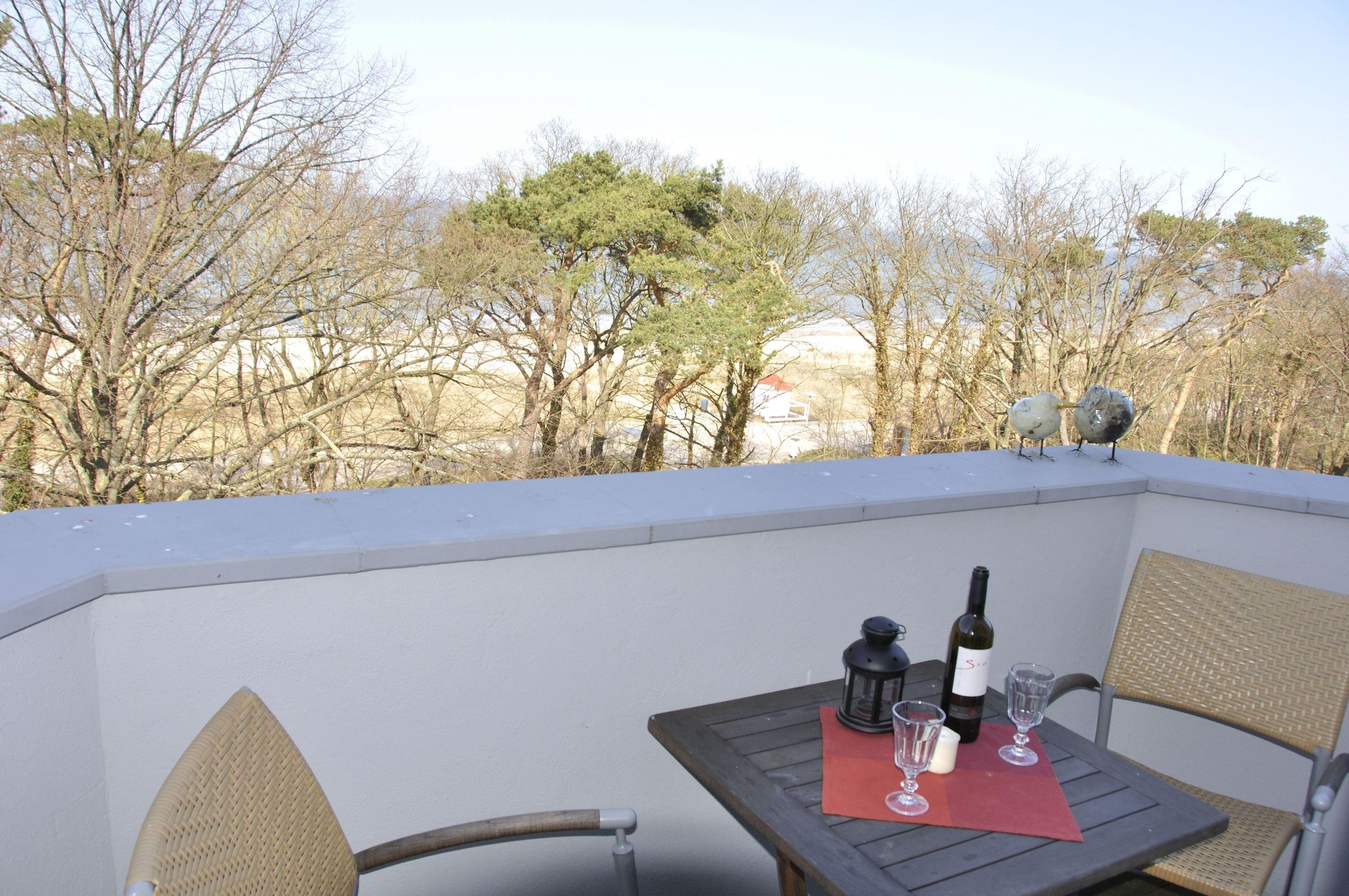 Die moderne 2-Zimmer-Ferienwohnung liegt im DG des Hauses mit einem Balkon zur Seeseite, jahreszeitlich mit Meerblick.