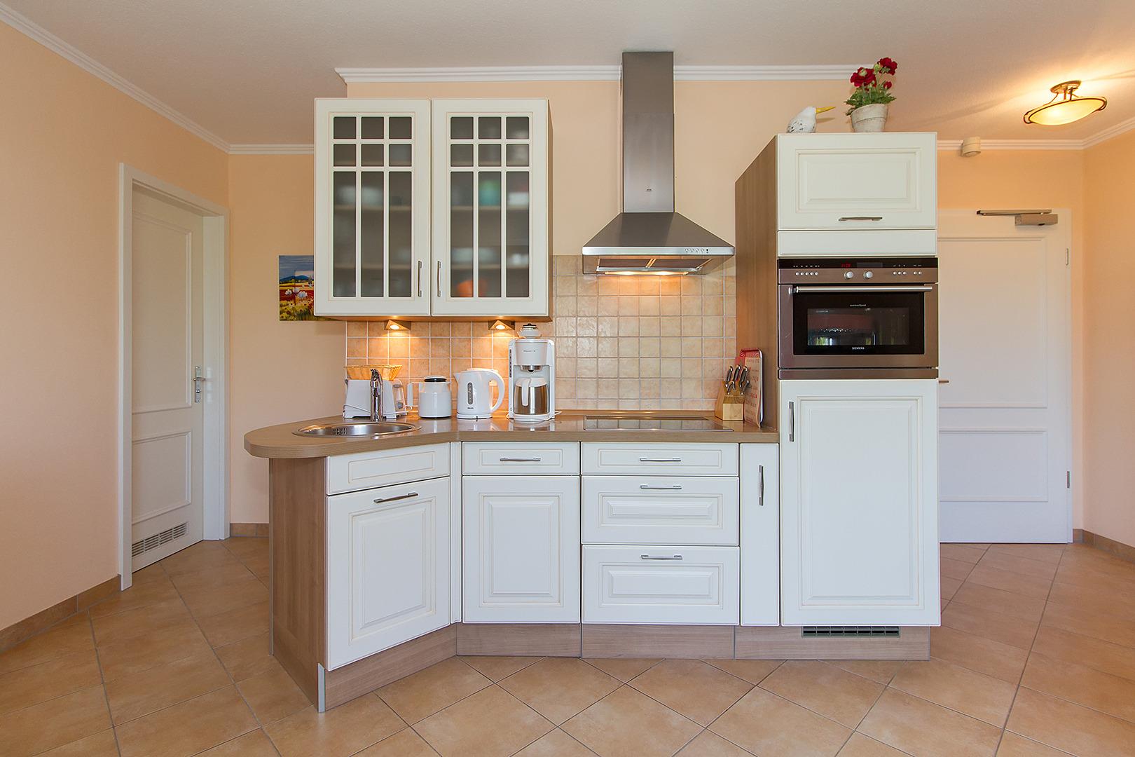 Die exklusive geschmackvolle Einrichtung läßt keine Urlaubswünsche offen. Im Wohnbereich finden Sie eine Sitzgruppe vor, einen Esstisch sowie eine moderne Einbauküche mit 4-Ceran-Feld, Mikrowellen-Kombibackofen und Geschirrspüler.