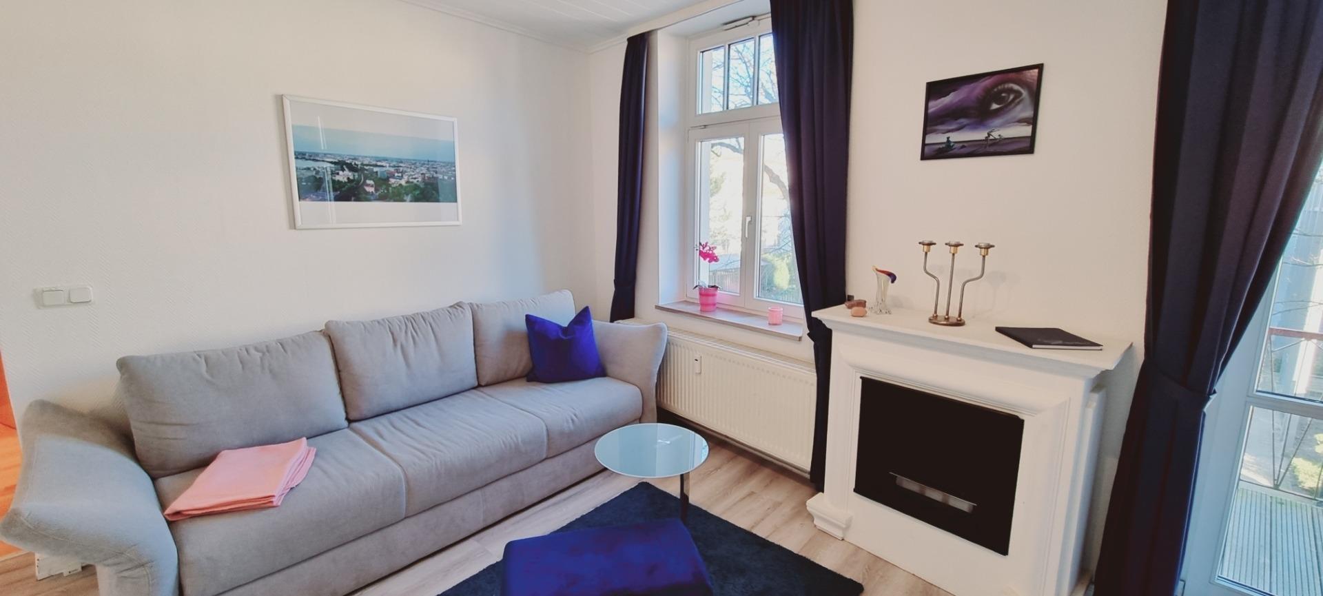 Die ansprechende und hochwertig eingerichtete 52 m² große 2-Zimmer Ferienwohnung ist über das Treppenhaus am Eingang 30A in der Strandstraße im 1. Obergeschoss zu erreichen.