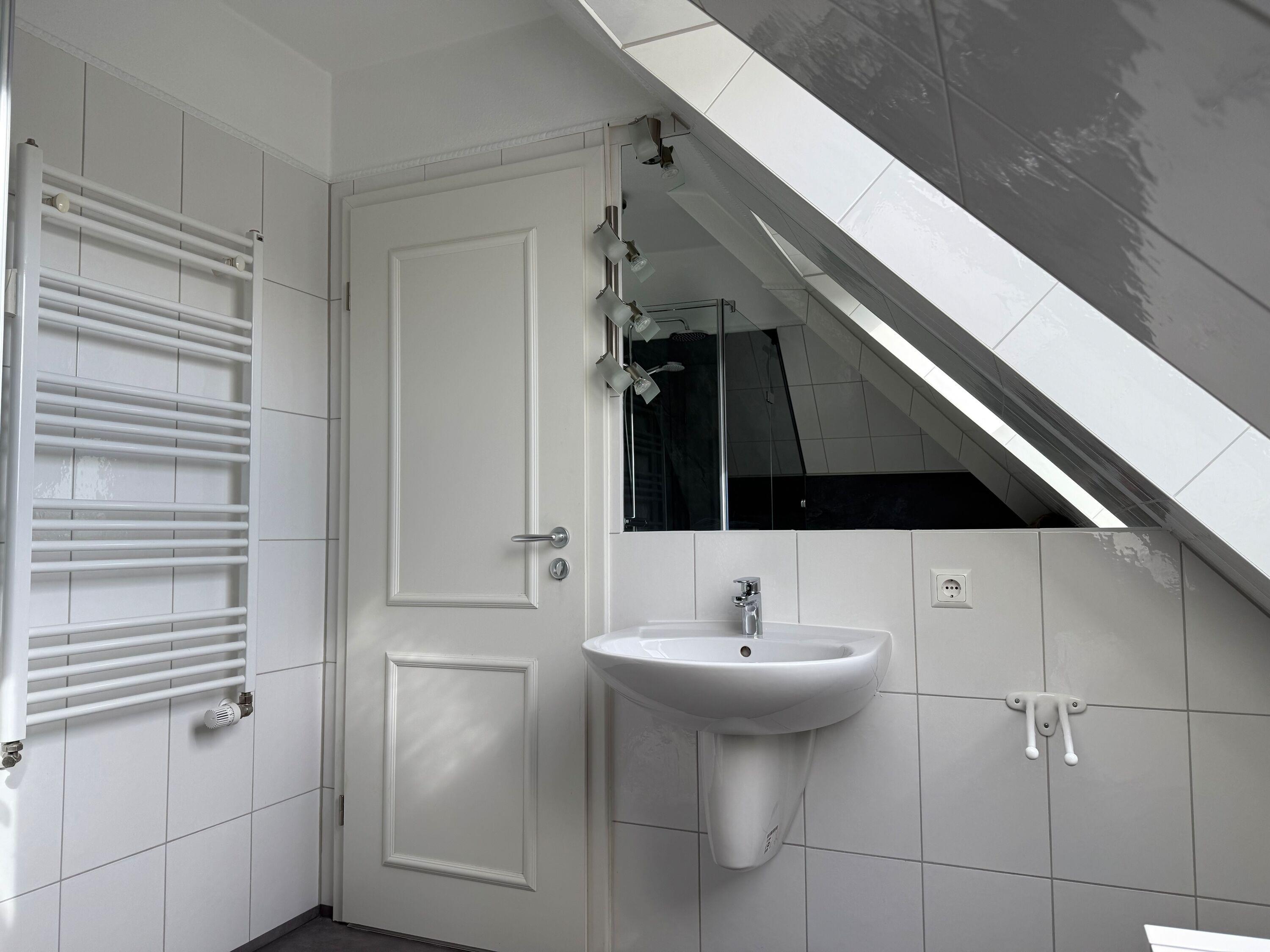 Auf dieser Etage befindet sich auch ein Gäste-WC. Über eine Treppe im Appartement gelangen Sie in das ausgebaute Dachgeschoss, wo sich das frisch renovierte Badezimmer mit Dusche, sowie das Schlafzimmer mit einem Doppelbett (180x200) und TV befinden. In einem Nebenraum stehen Ihnen ein weiteres Doppelbett (140x200) und ein Einzelbett zur Verfügung.