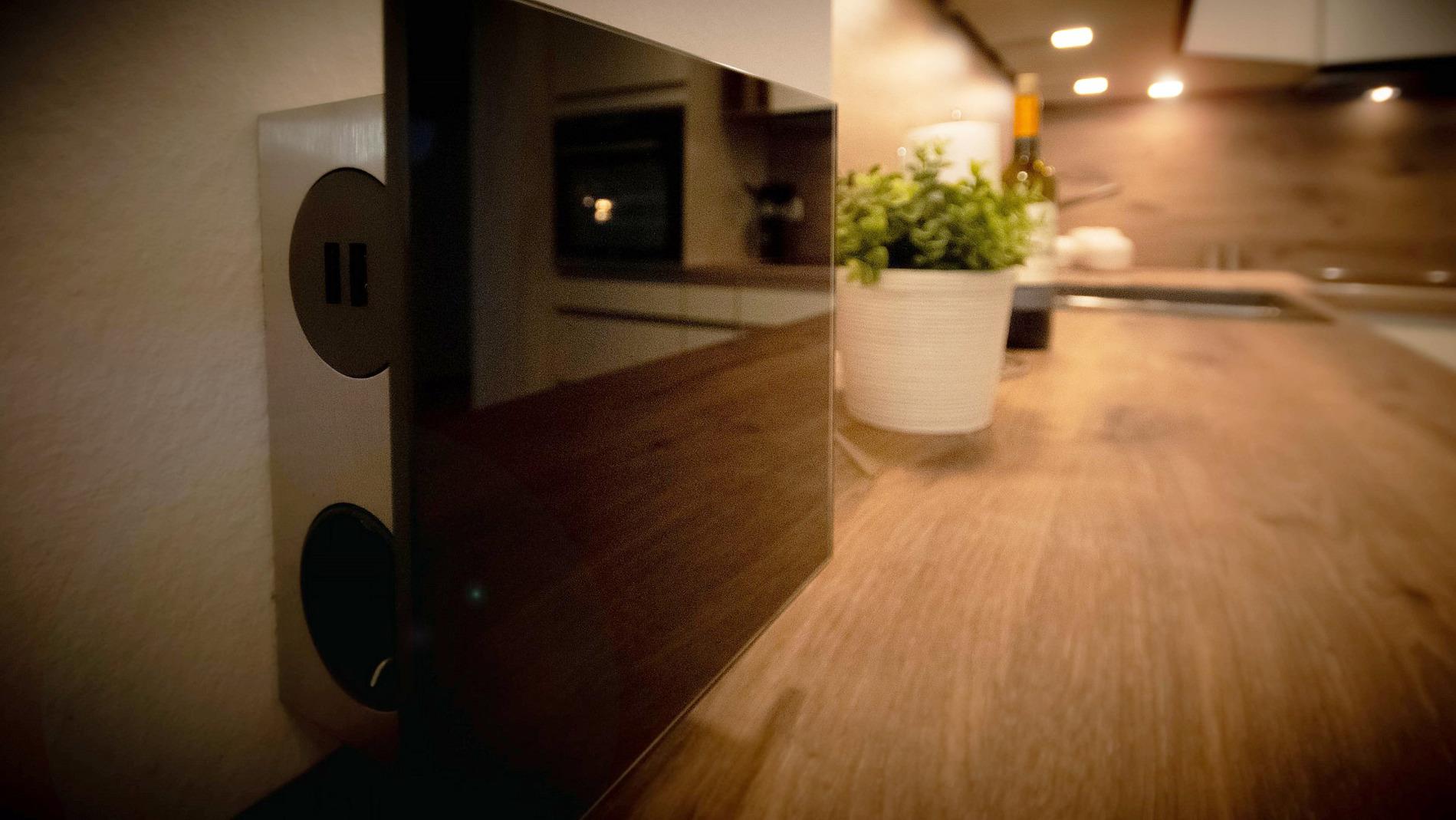Zur technischen Ausstattung im Wohnbereich gehören einen großen Smart-TV und eine Hifi-Anlage.