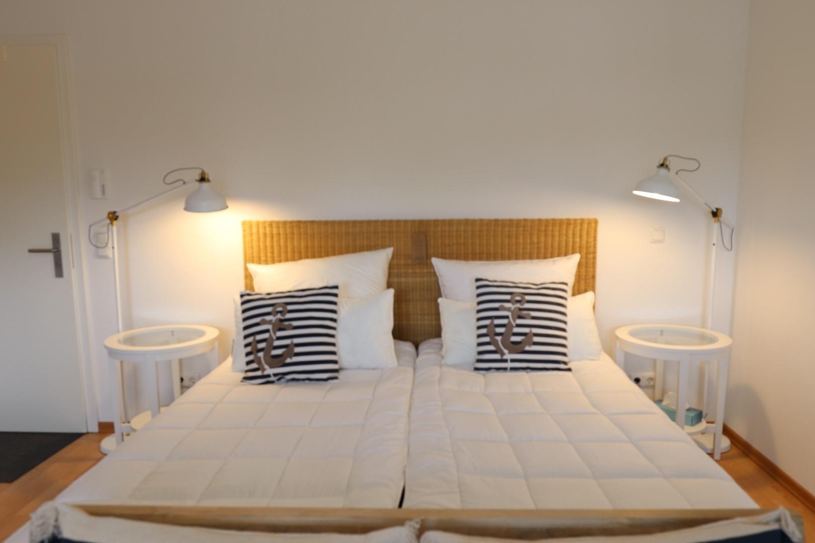 Des weiteren befindet sich ein Doppelbett und eine separate Sitzgruppe im Wohnbereich. Farb-TV sowie eine Anlage gehören zur Einrichtung dazu. Ein Duschbad/WC rundet die Ferienwohnung ab.