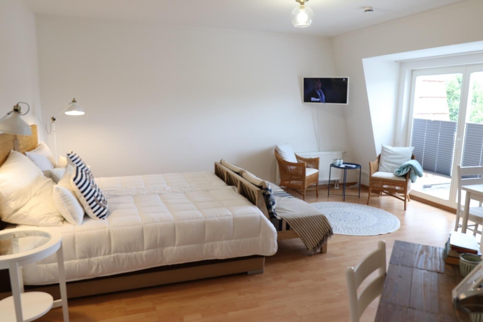 Das komfortable Studio liegt im 2. Obergeschoss des Hauses. Der Balkon lädt zum Verweilen ein.