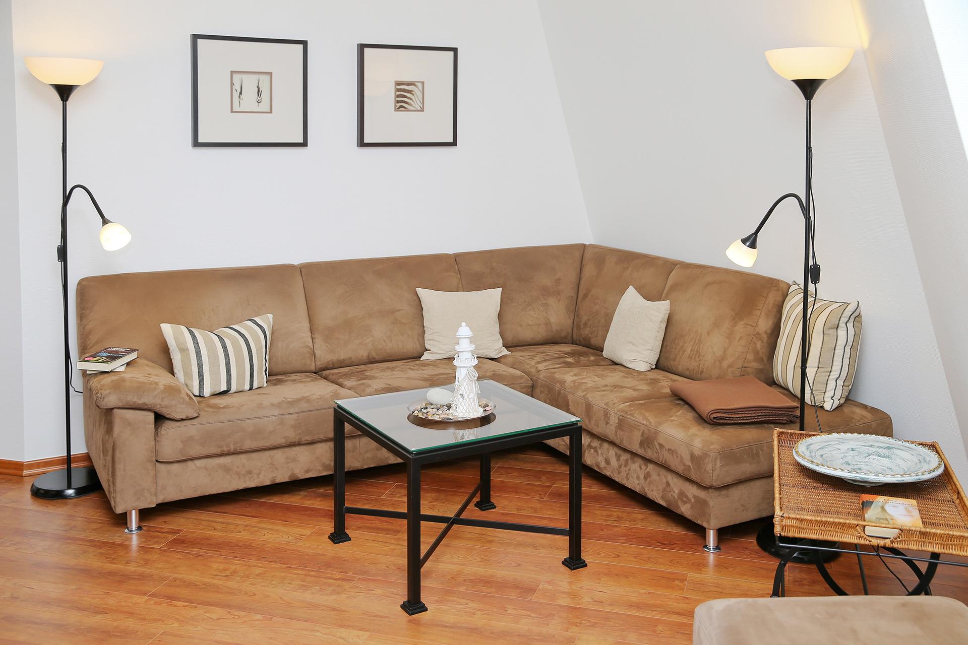Die komfortable Ferienwohnung, für bis zu 4 Personen liegt im Dachgeschoss des Hauses. Der Südbalkon lädt zum Verweilen ein.