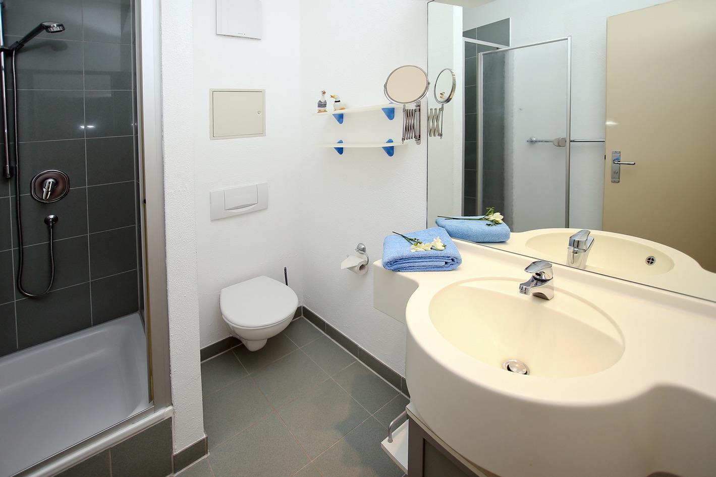 Im Bad/WC befindet sich eine Dusche.