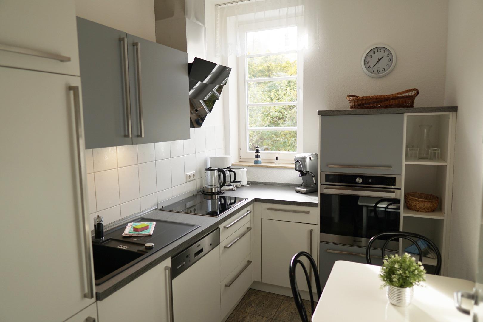 Die schicke und vollständig ausgestattete hochwertige separate Küche wurde in 2020 komplett erneuert. Sie verfügt über ein Induktionskochfeld, einen Backofen, einem Geschirrspüler und einer Mikrowelle.