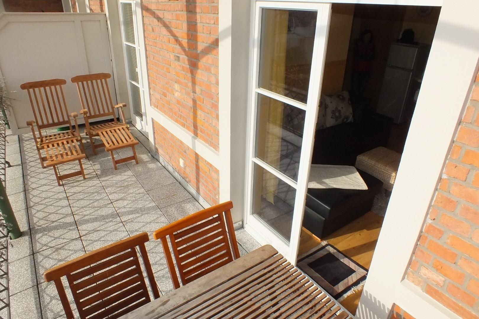Der große Balkon ist zur Ostseite ausgerichtet und bietet bei schönem Wetter ein sonniges Frühstück und abends windgeschützte Lage für ein Glas Rotwein.