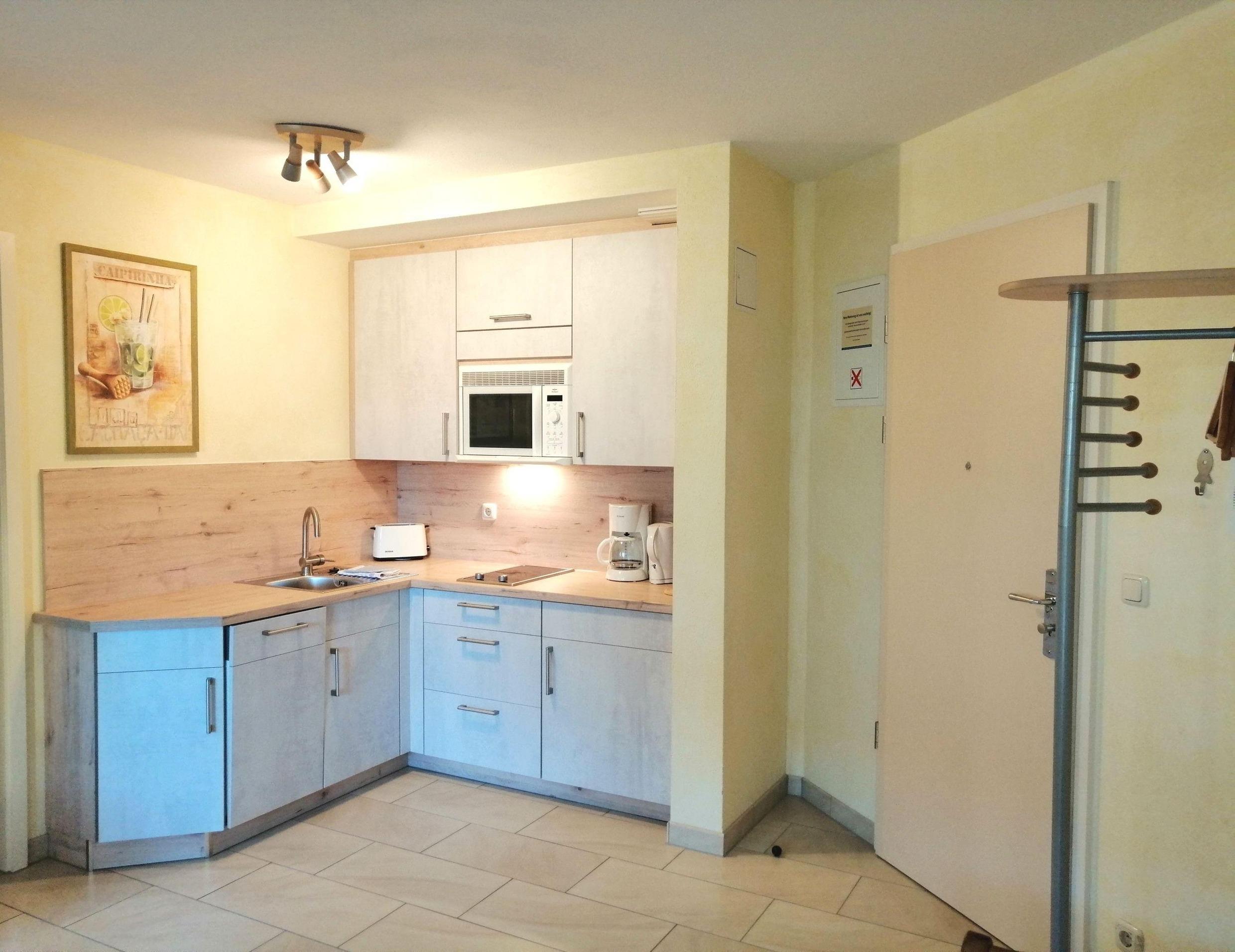 * komplett eingerichtete Küche mit 2 Platten- Ceran Kochherd und Mikrowelle