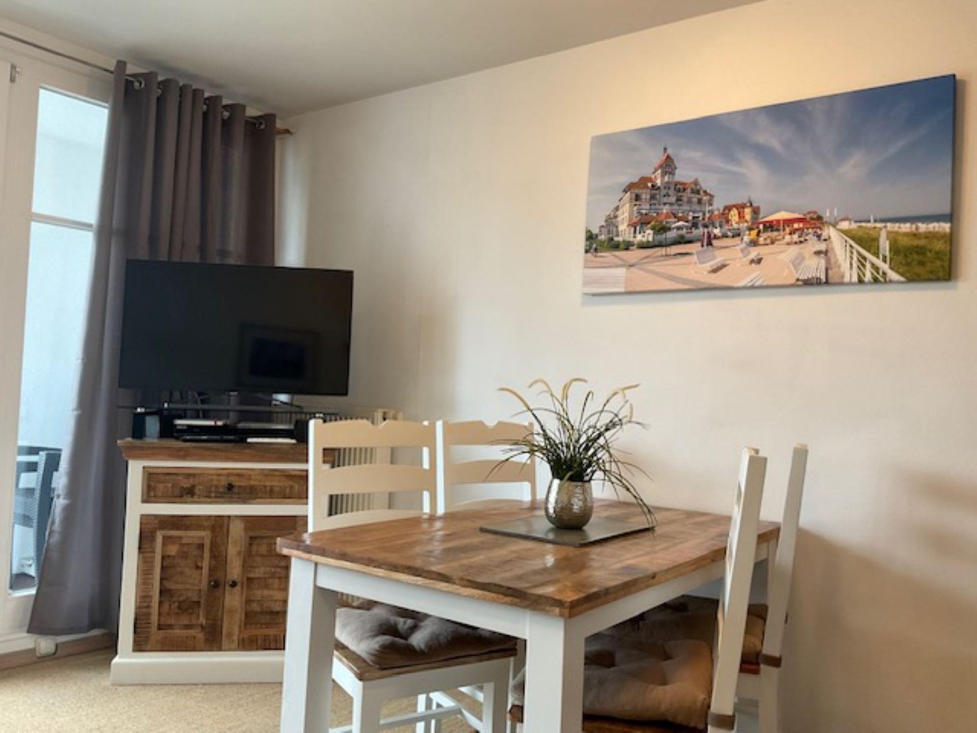 Das Wohnzimmer lädt Sie nach einem langen Strandspaziergang zum Erholen ein. Oder ein unterhaltsamer TV-Abend? Kein Problem, legen Sie die Beine hoch und genießen Sie es!