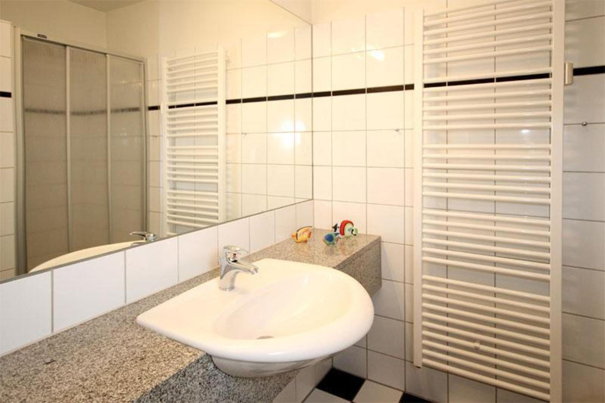 Das Badezimmer ist mit einer Dusche, einem WC, einem qualitativ hochwertigen Waschbecken und einem Handtuchheizkörper ausgestattet.
