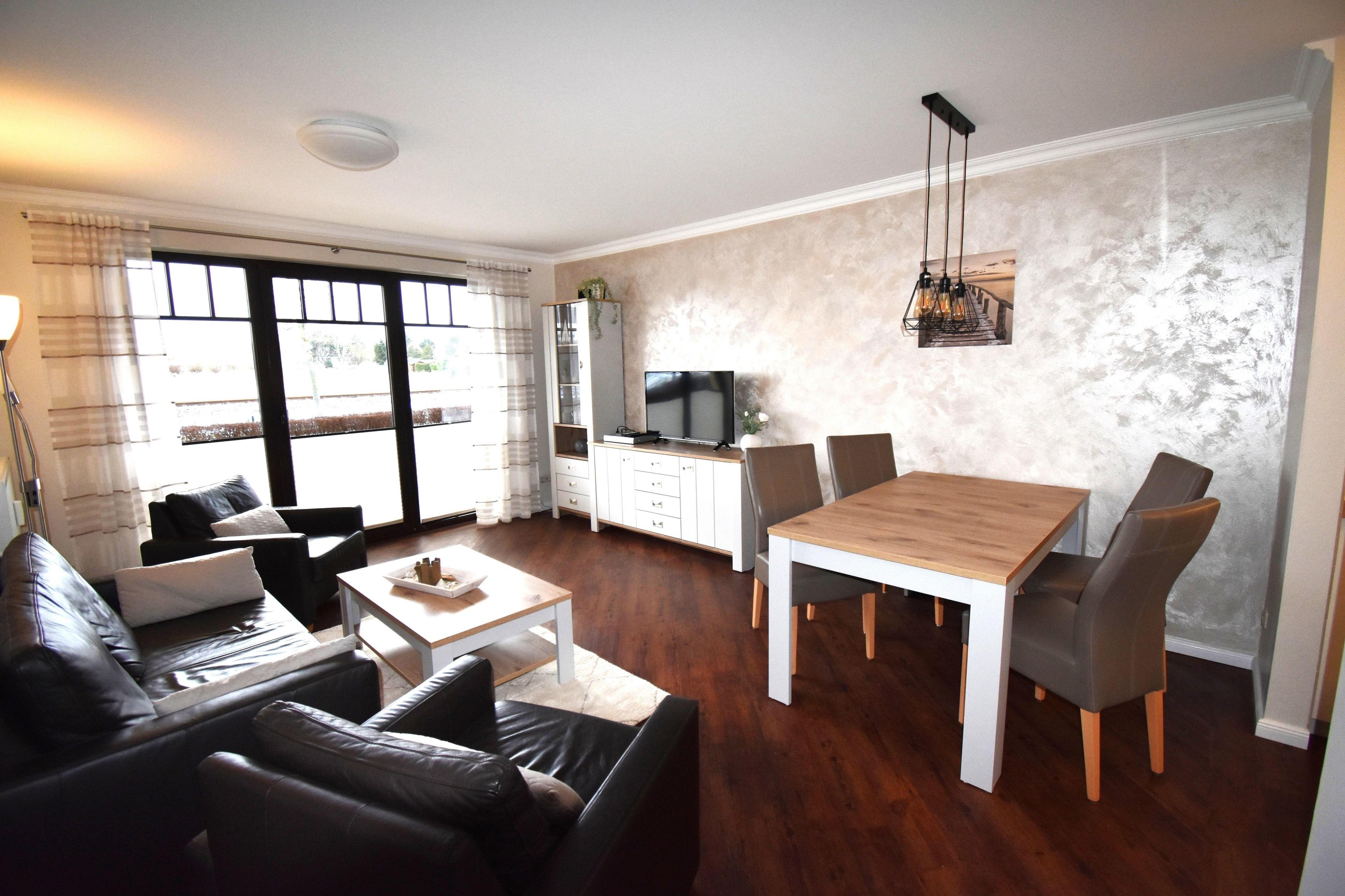 Die 69 qm große Wohnung für 4 Personen befindet sich im Erdgeschoss dieser sehr gepflegten Anlage. Eine hochwertige Einrichtung erwartet Sie in der zur Südseite gelegenen hellen und gemütlichen Wohnung. Auf der Terrasse kann man bis in die Abendstunden die Sonne genießen.