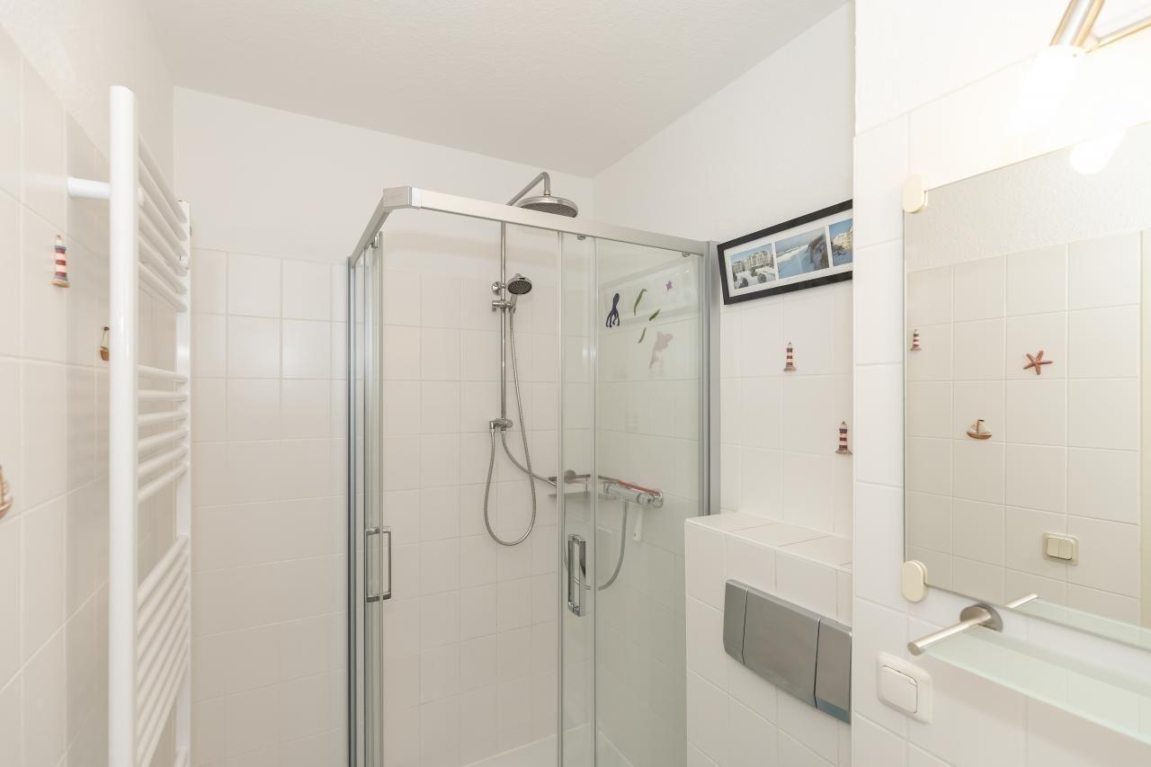 Das Badezimmer verfügt über eine Dusche, ein WC und ein Waschbecken und ist vom Flur aus zu erreichen.
