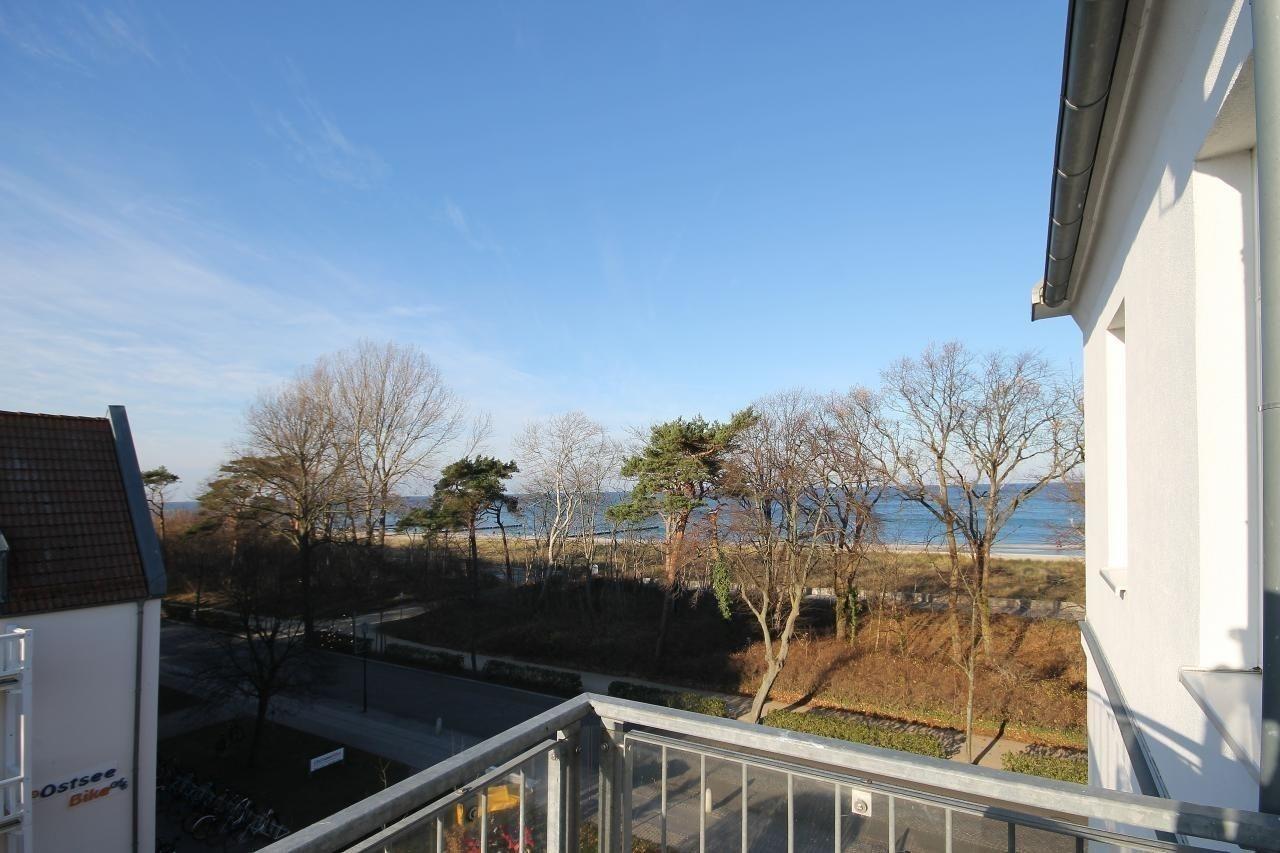 Vom Wohnzimmer aus gelangen Sie auf den einladenden Balkon mit Meerblick, der zur Westseite ausgerichtet ist. Ab mittags können Sie die Sonne genießen und entspannen.