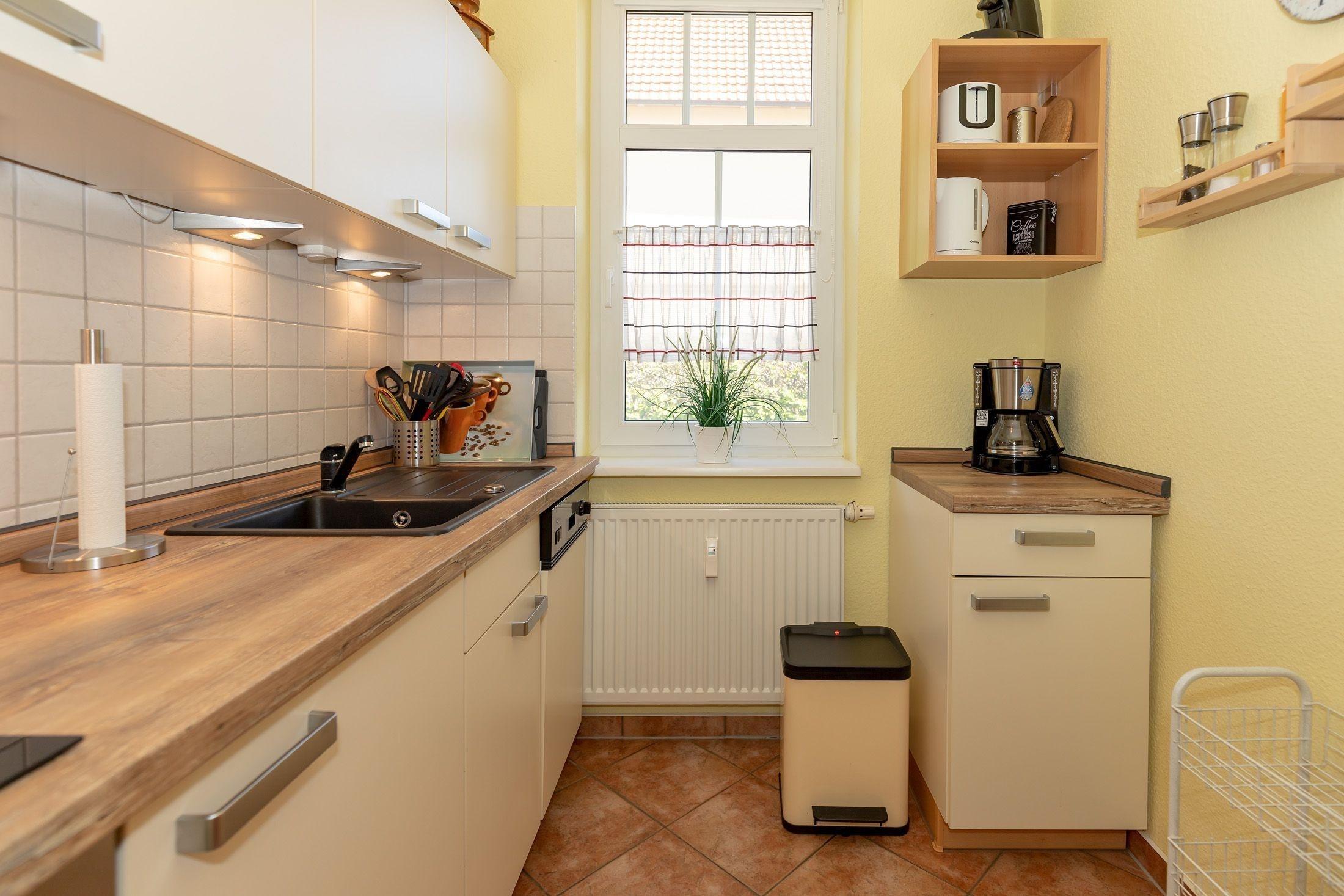 Die Küche ist voll ausgestattet, es stehen Ihnen alle technischen Geräte und weitere Küchenutensilien zur Verfügung, die in einer modernen Küche nicht fehlen dürfen. Schnell und bequem können Sie hier Ihre Lieblingsmahlzeiten zaubern.