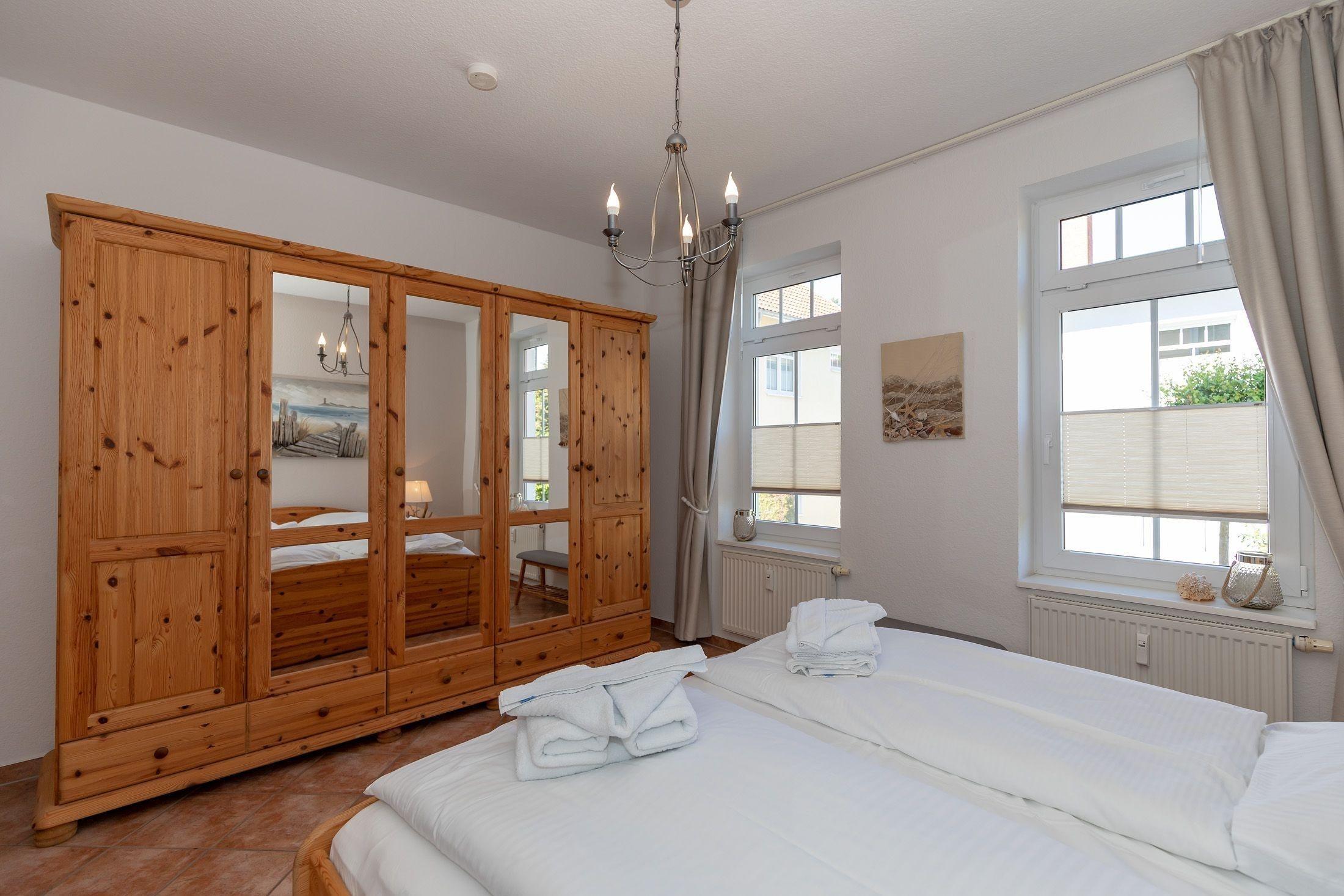 Das Schlafzimmer verfügt über ein komfortables Doppelbett, ein erholsamer Schlaf ist somit garantiert. Ein geräumiger Kleiderschrank mit Spiegel bietet ausreichend Platz für Ihre Urlaubsgarderobe.